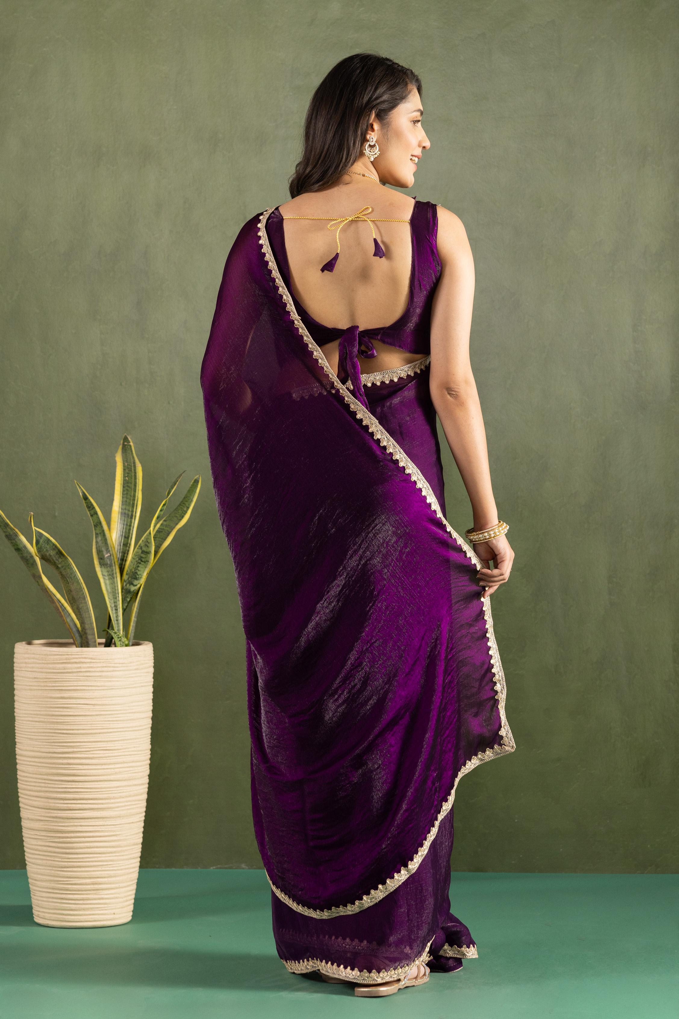 Lavender Color Chiffon Fabric Ready To Wear Saree For Graceful Bollywood Style Saree