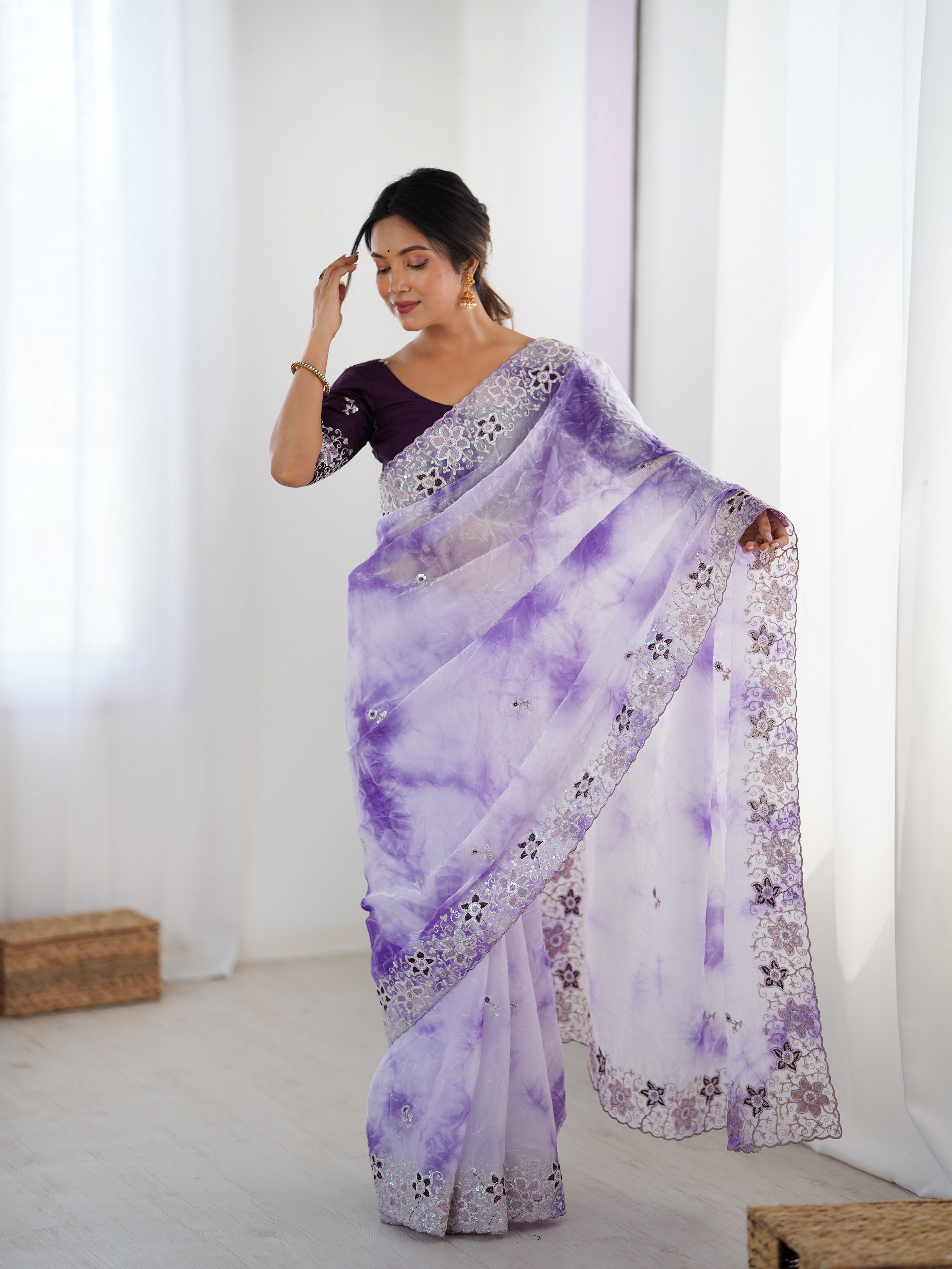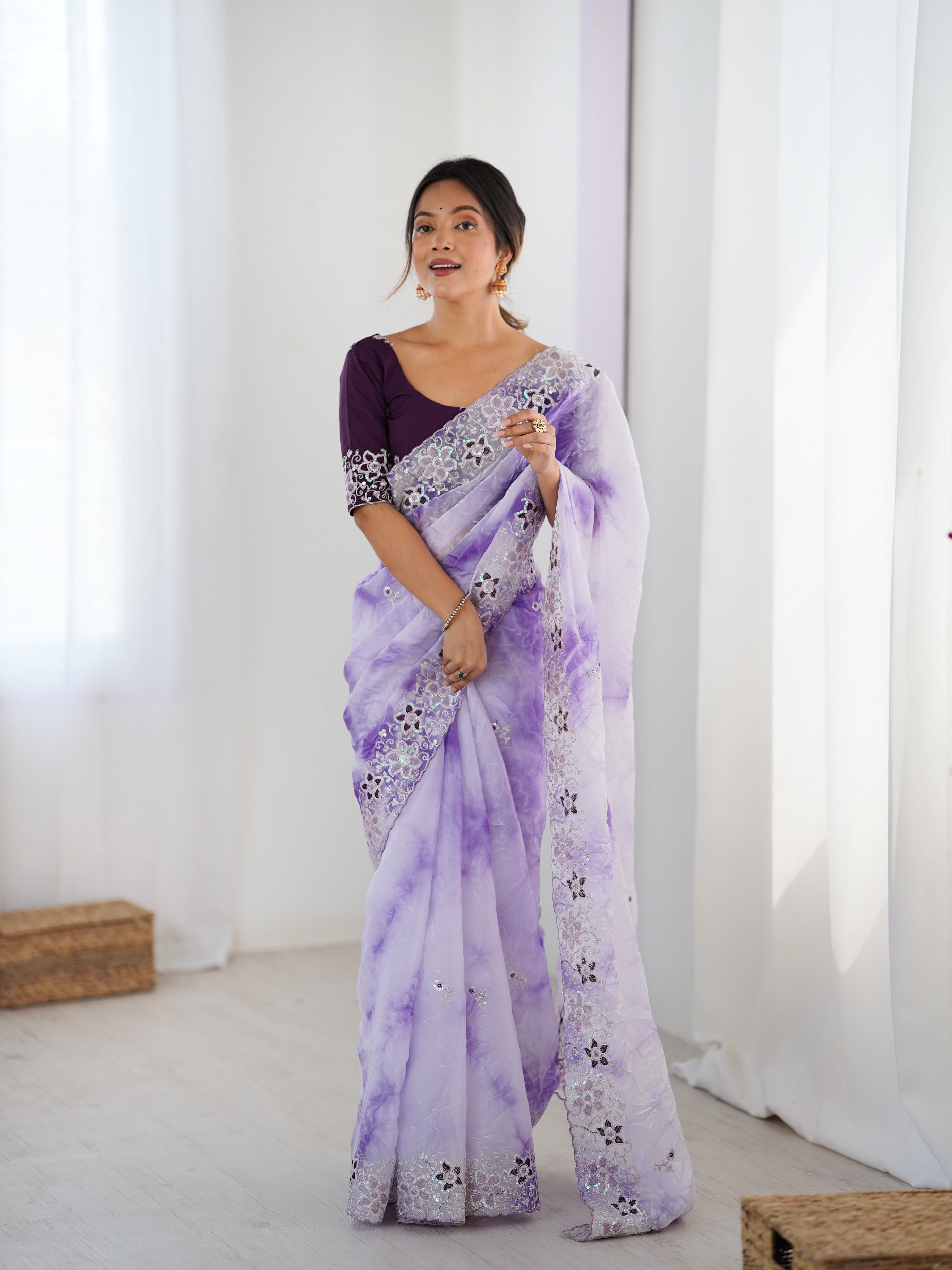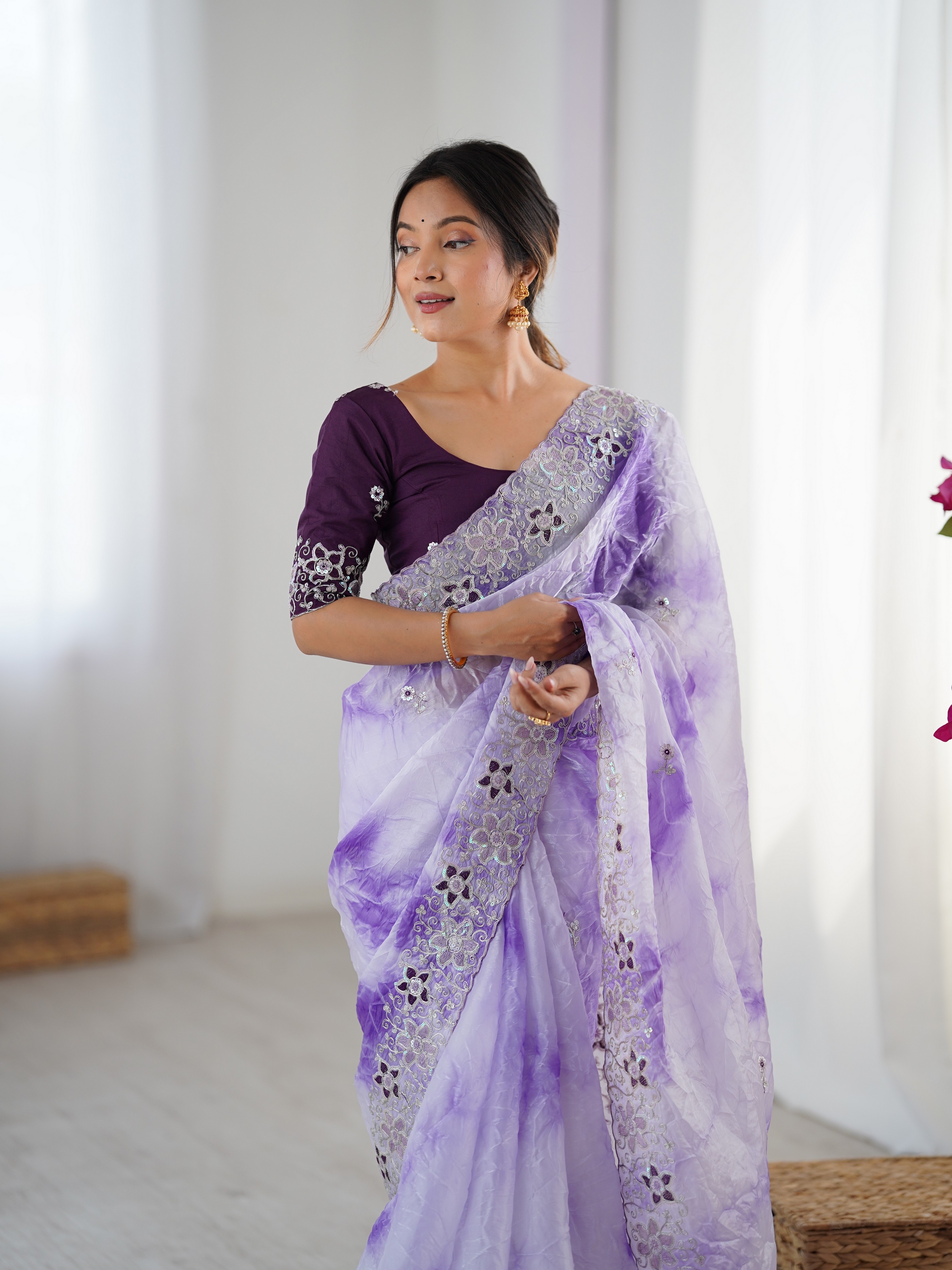 Lavender color Fendy Fabric Stylish Girlie Saree