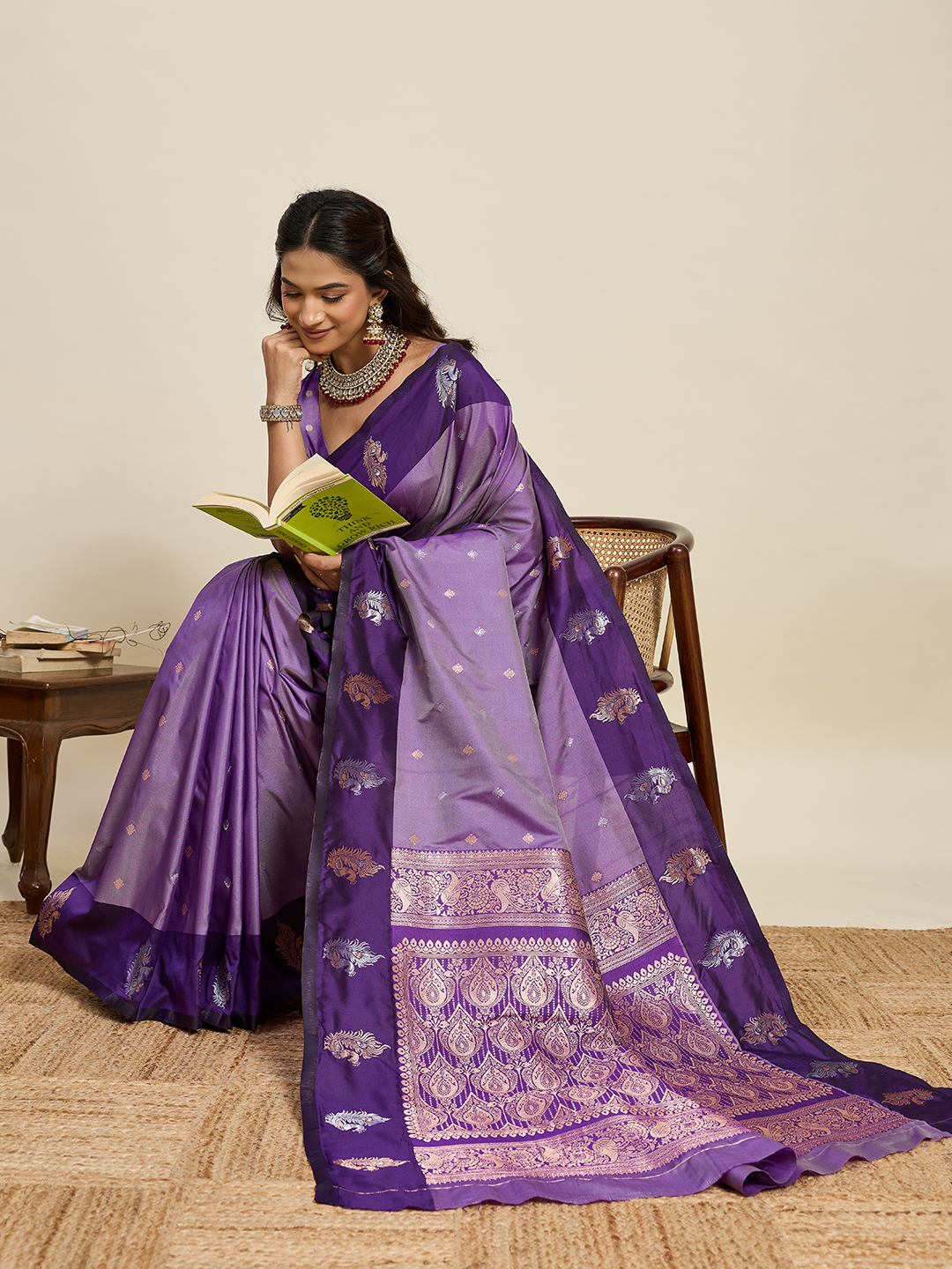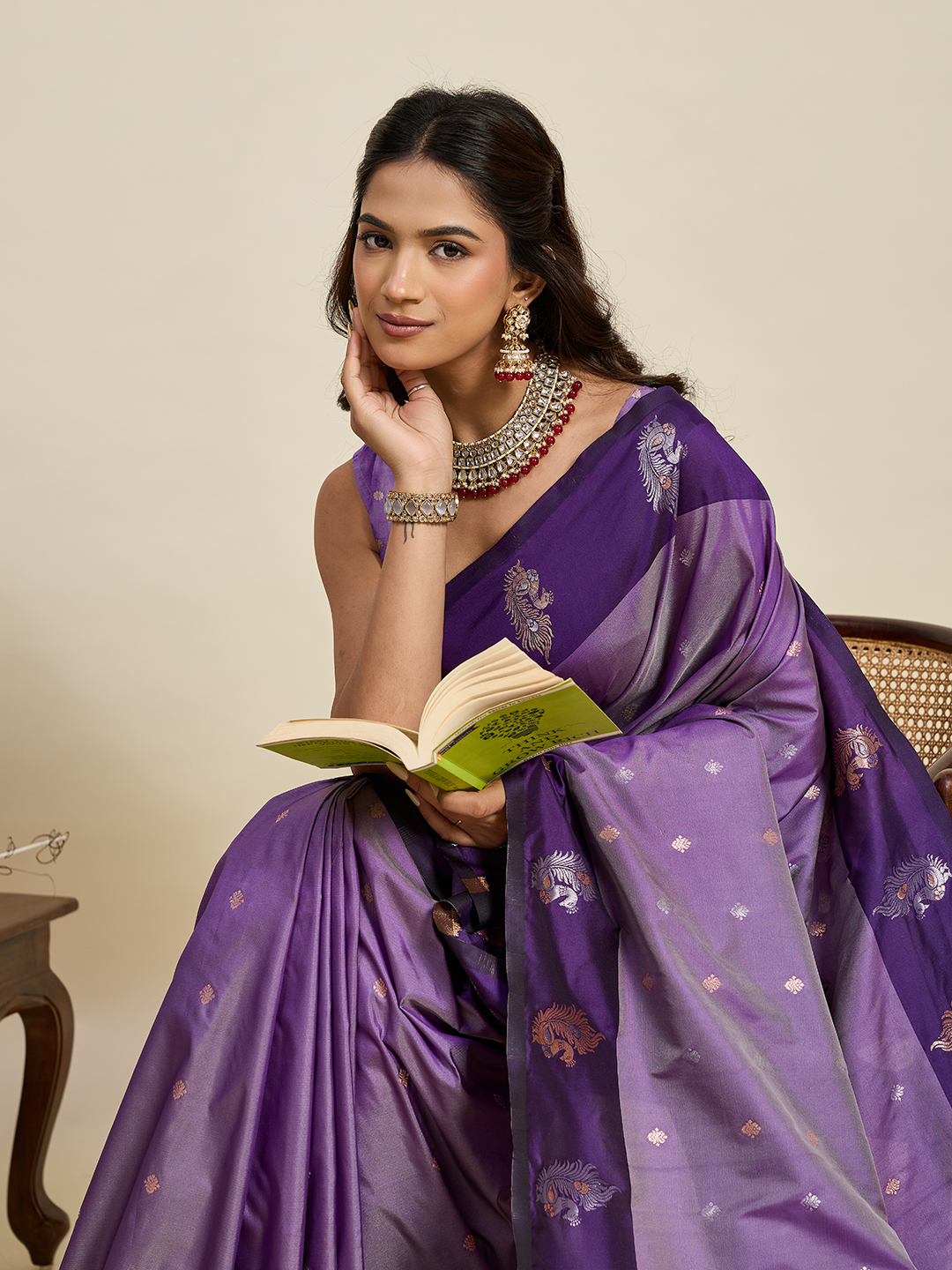 Lavender Color Soft Silk Fabric Designer Ethnic Woven Traditional Saree