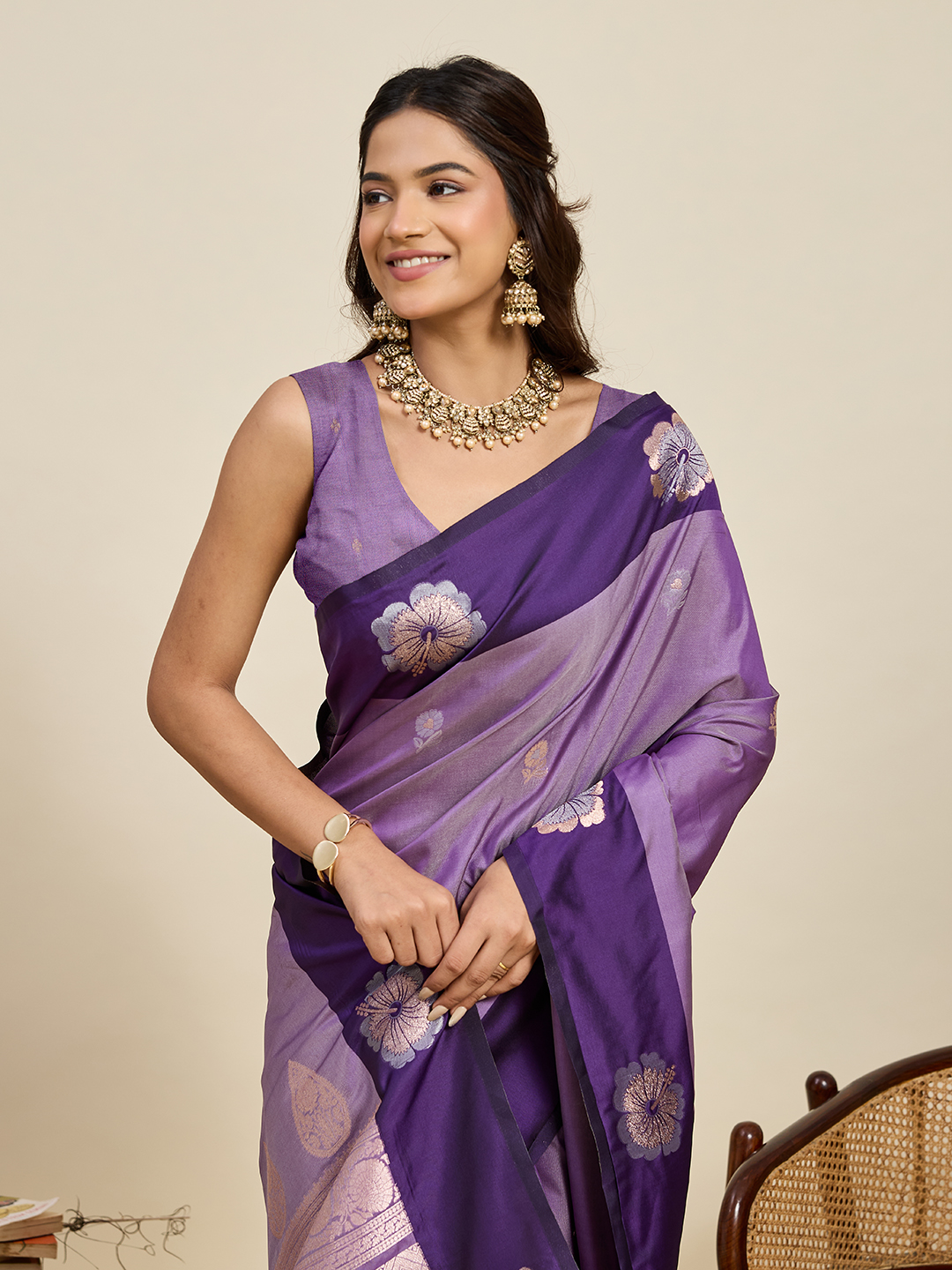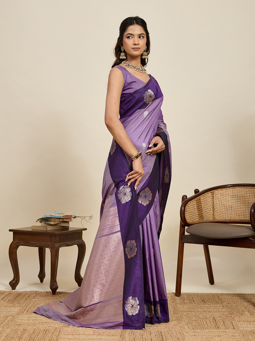 Lavender Color Soft Silk Fabric Woven Jari Designer Ethnic Indian Saree