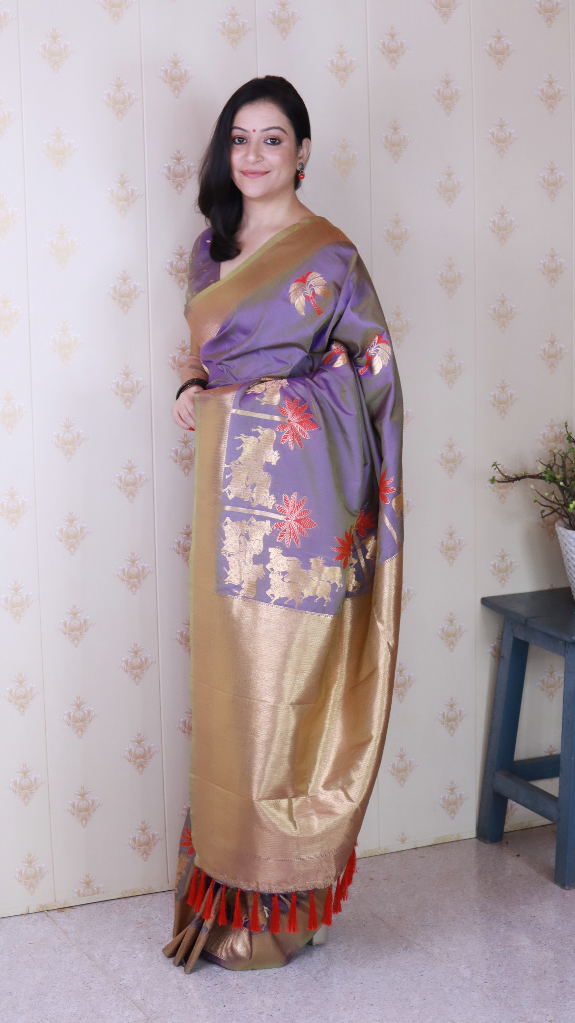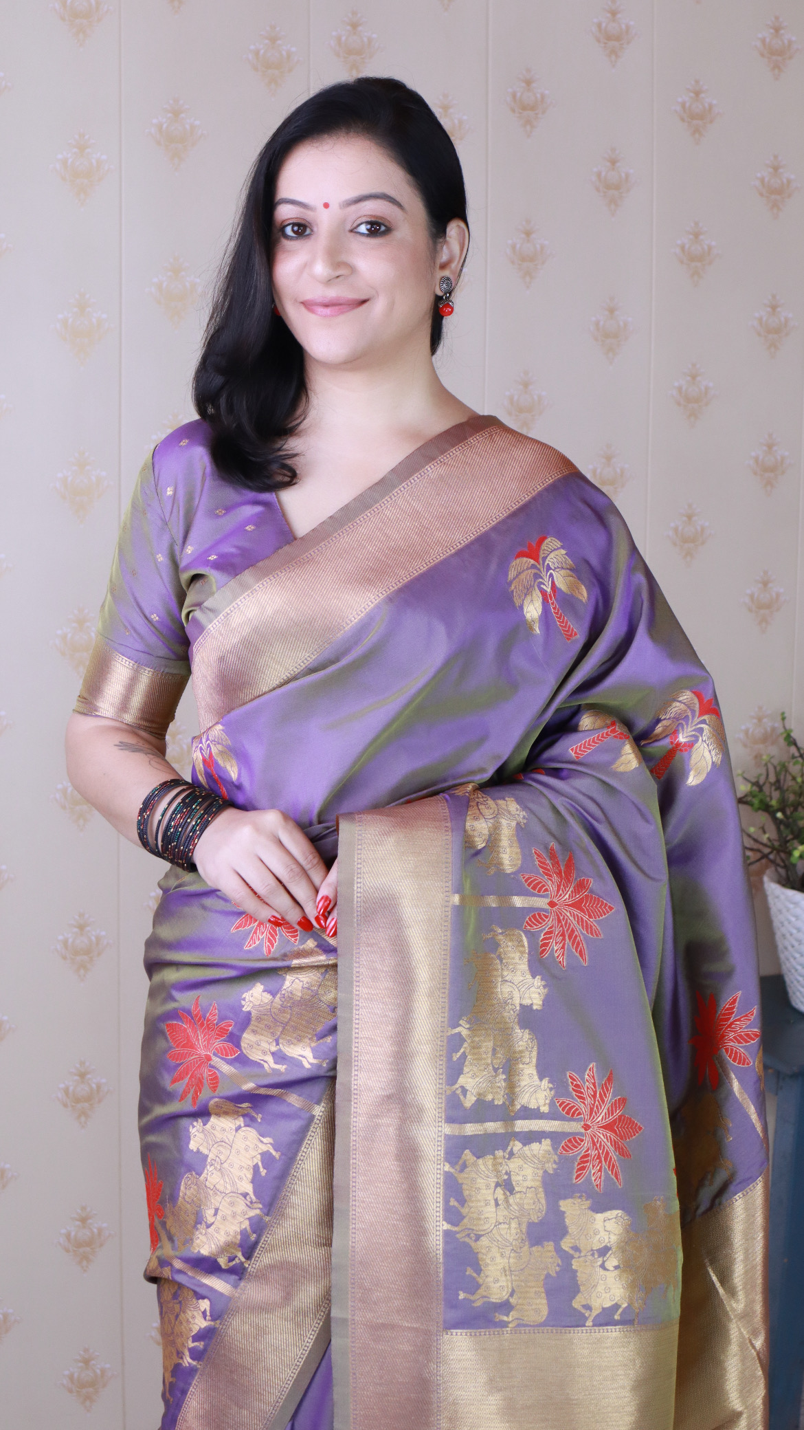 LavenderColor Soft Silk Fabric Woven Meenakari Designer Ceremonial Partywear Saree