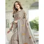 Light Beige Color Linen Fabric Sophisticated Floral Embroidered Saree