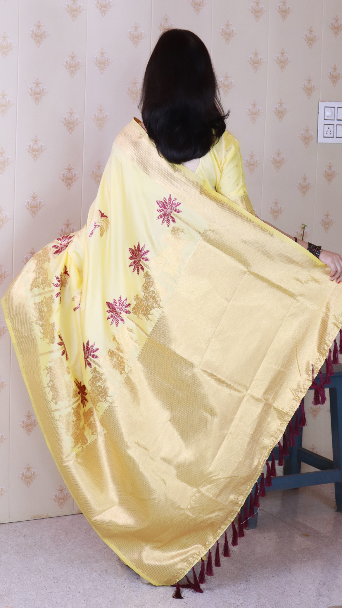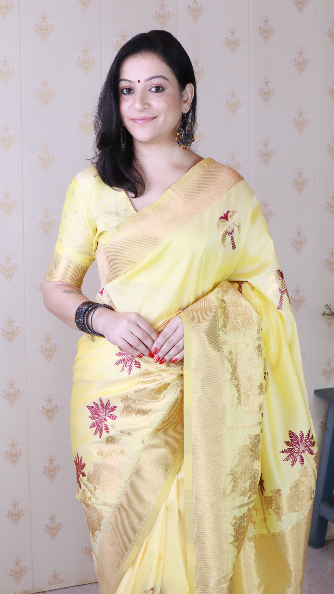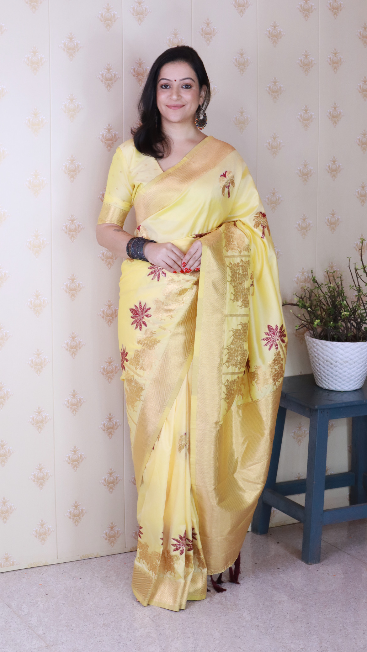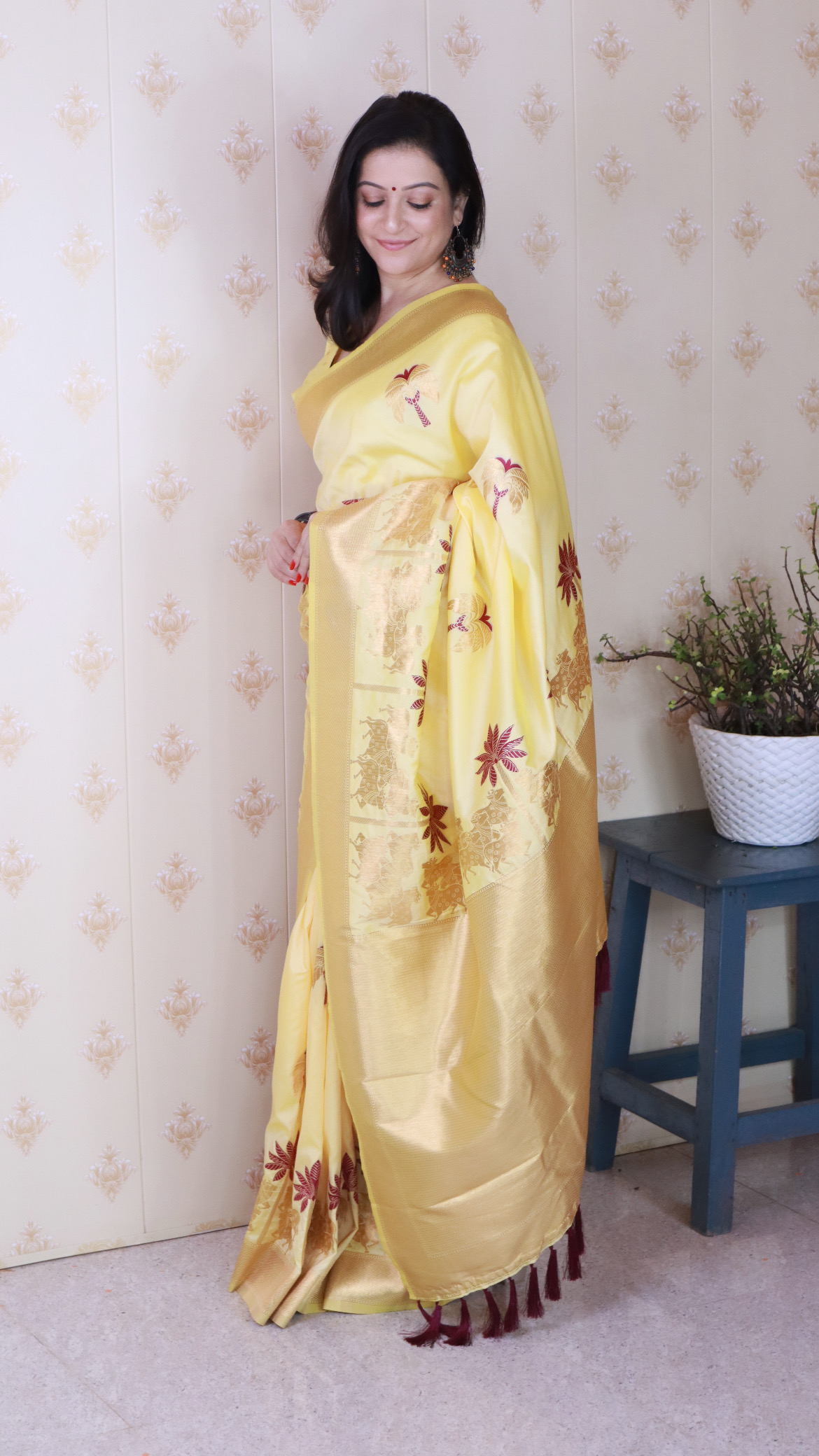 Light YellowColor Soft Silk Fabric Woven Meenakari Designer Ceremonial Partywear Saree