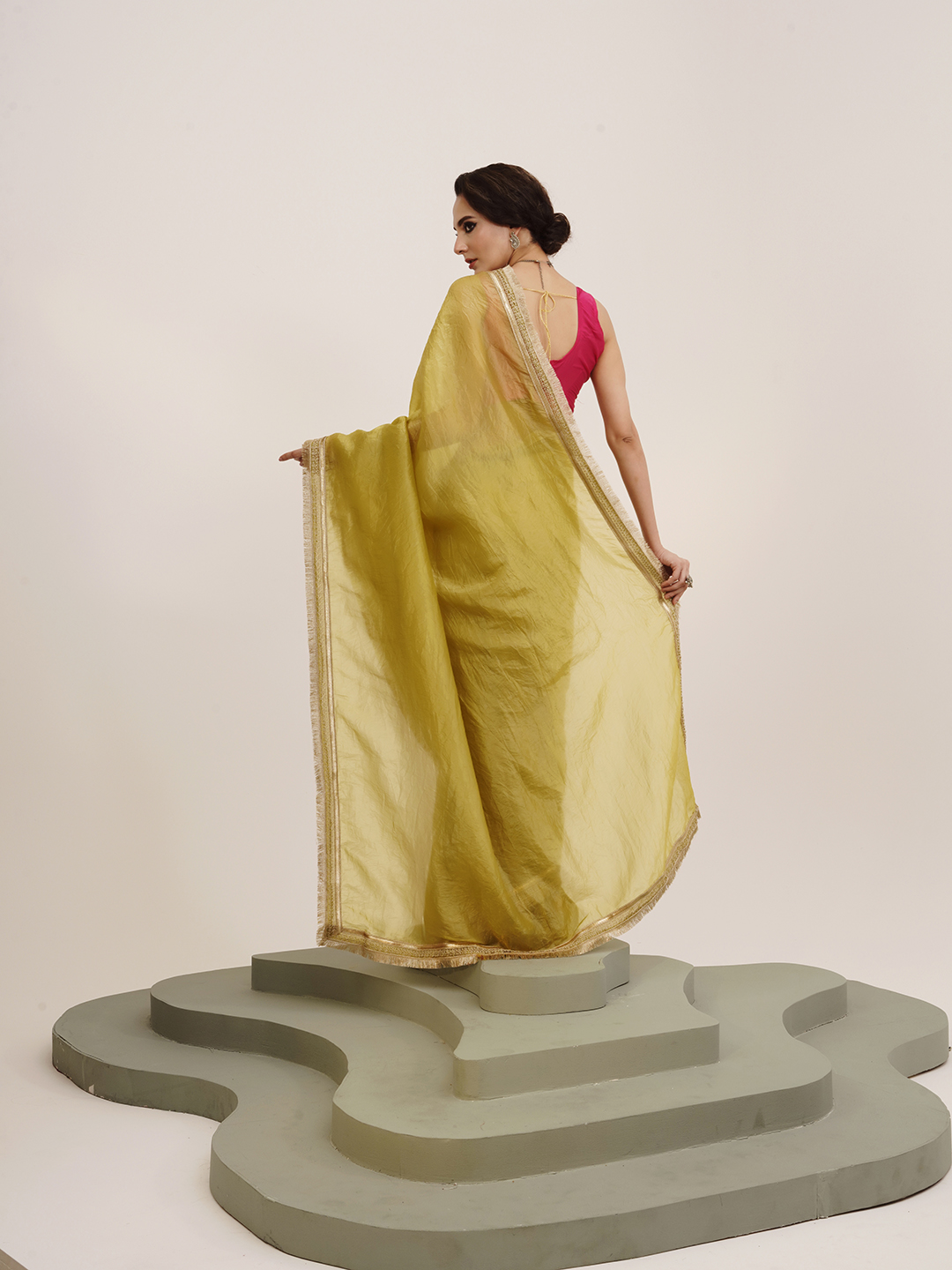 Made using high-quality fabrics such as silk, soft silk, georgette, organza, chiffon, crepe, linen, cotton blends ...etc .
