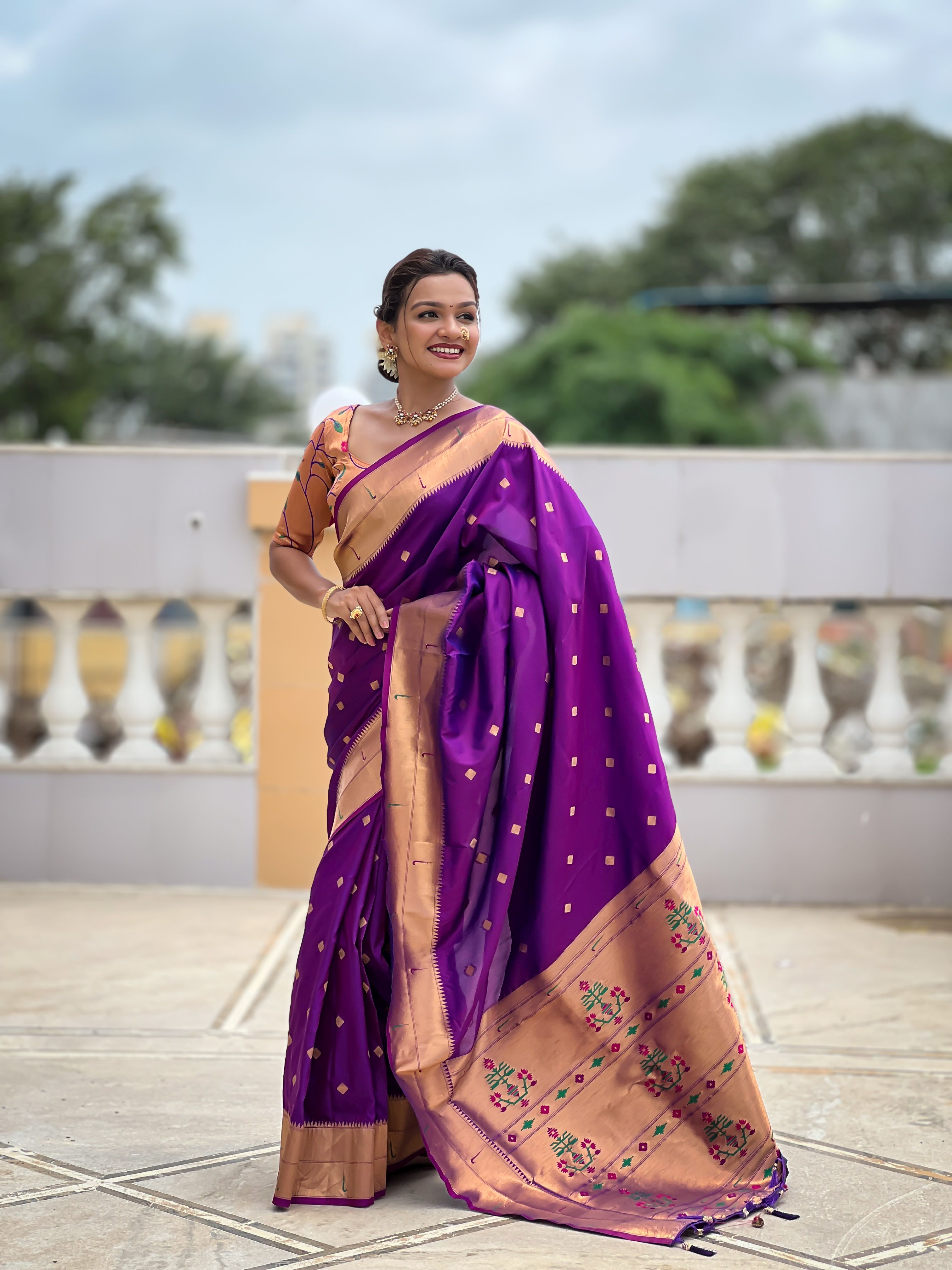 Magenta Color Paithani Silk Woven Jacquard Jari Designer Ethnic Saree