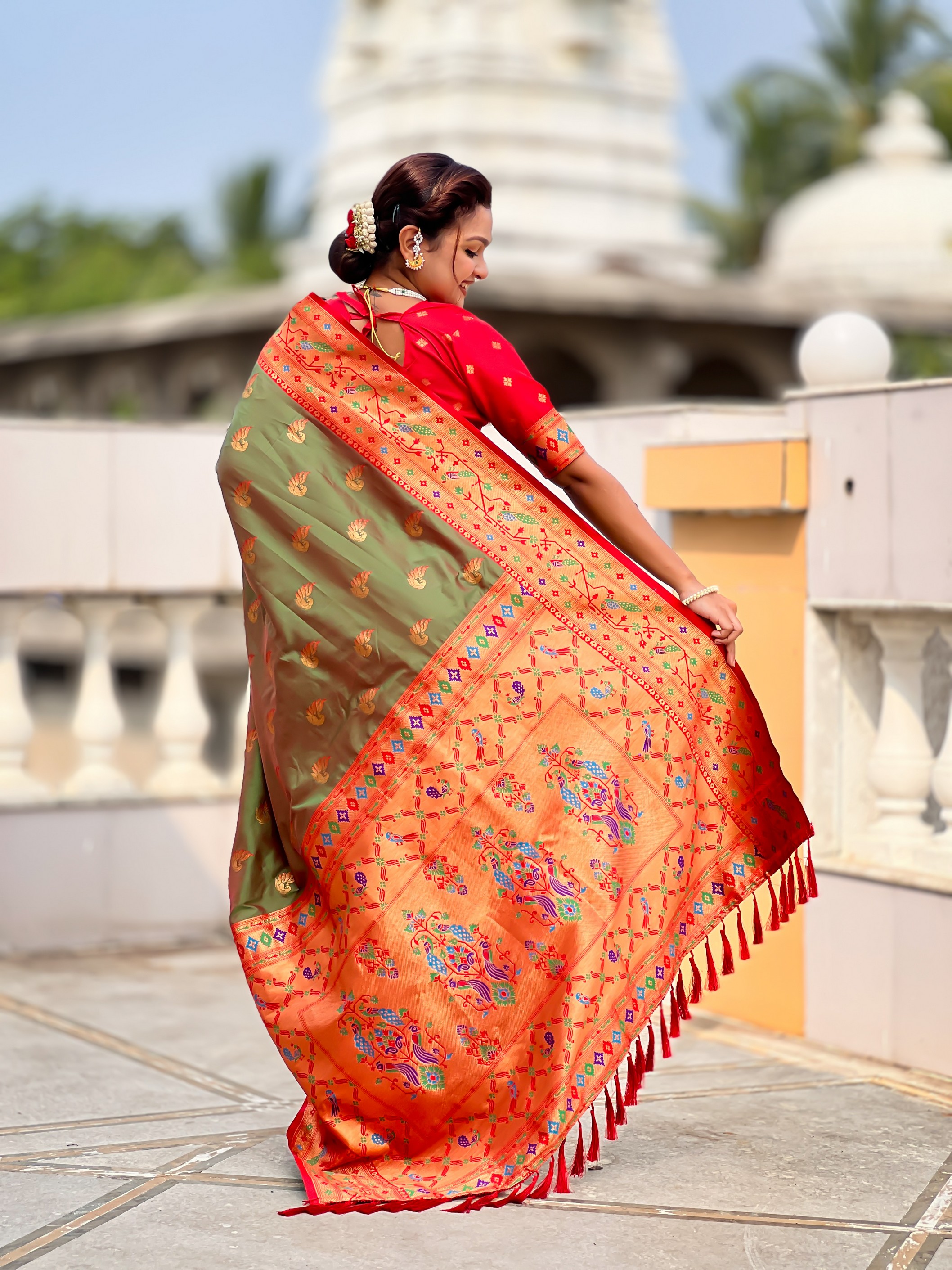 Mahendi Color Paithani Silk Woven Meenakari Jacquard Designer Saree