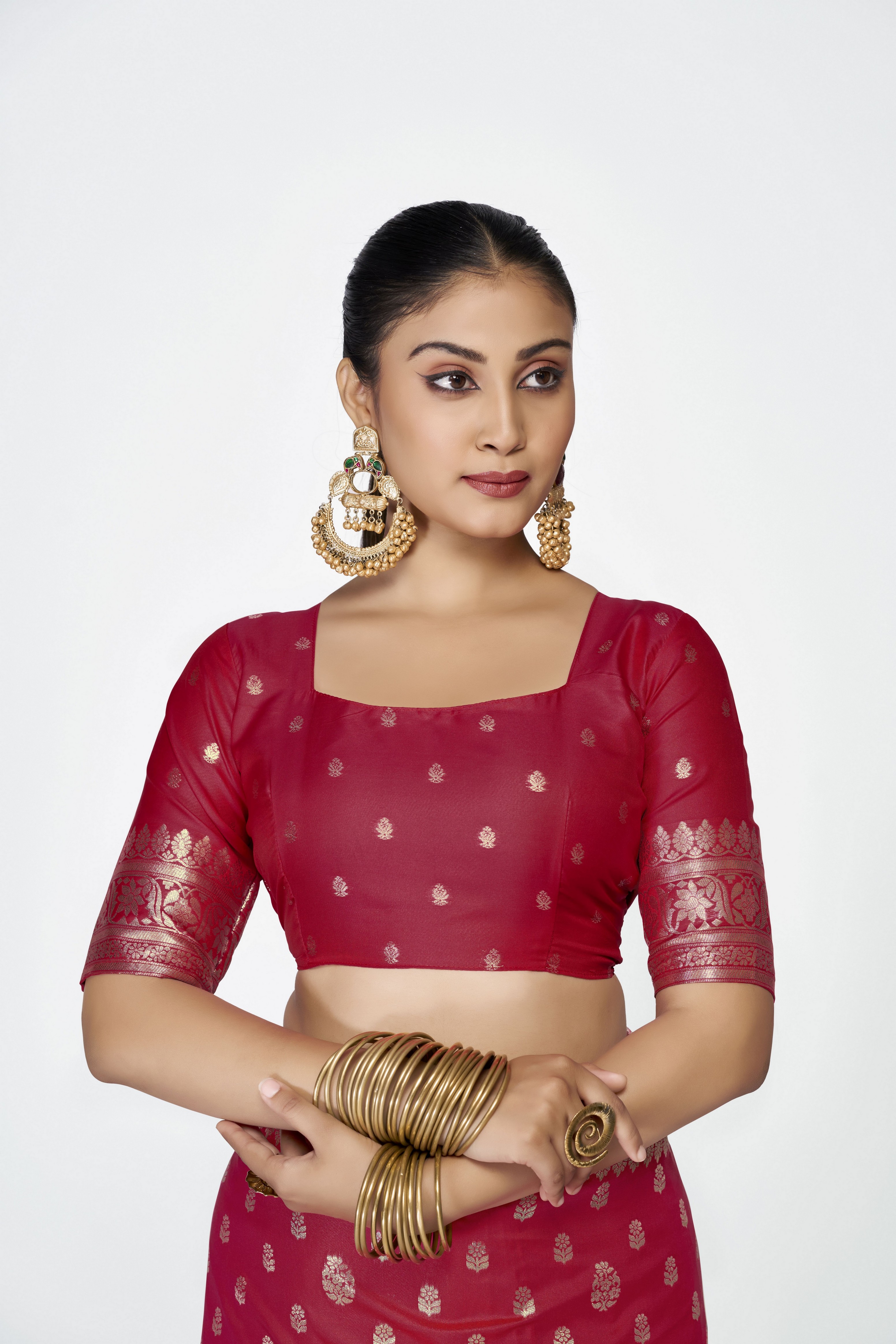 Maroon Color Banarasi Silk Fabric Woven Jari Butti Designer Celebrity Fancy Saree