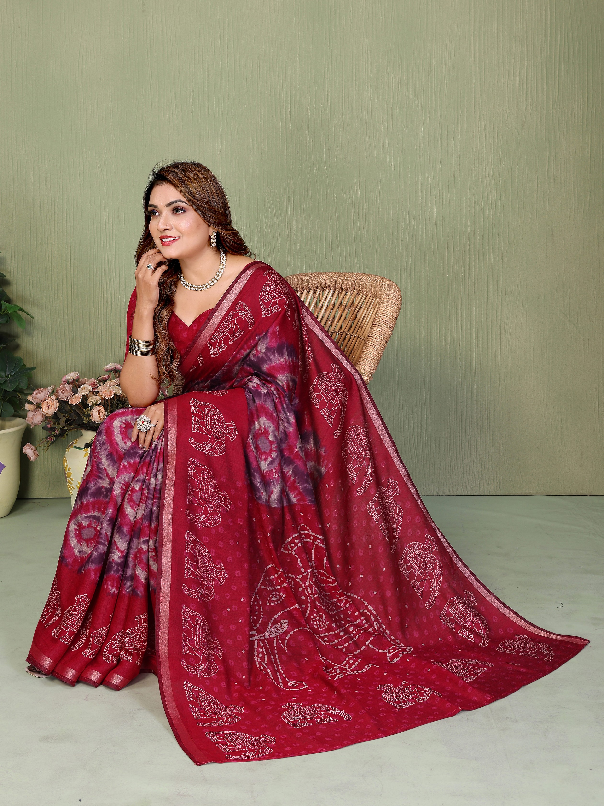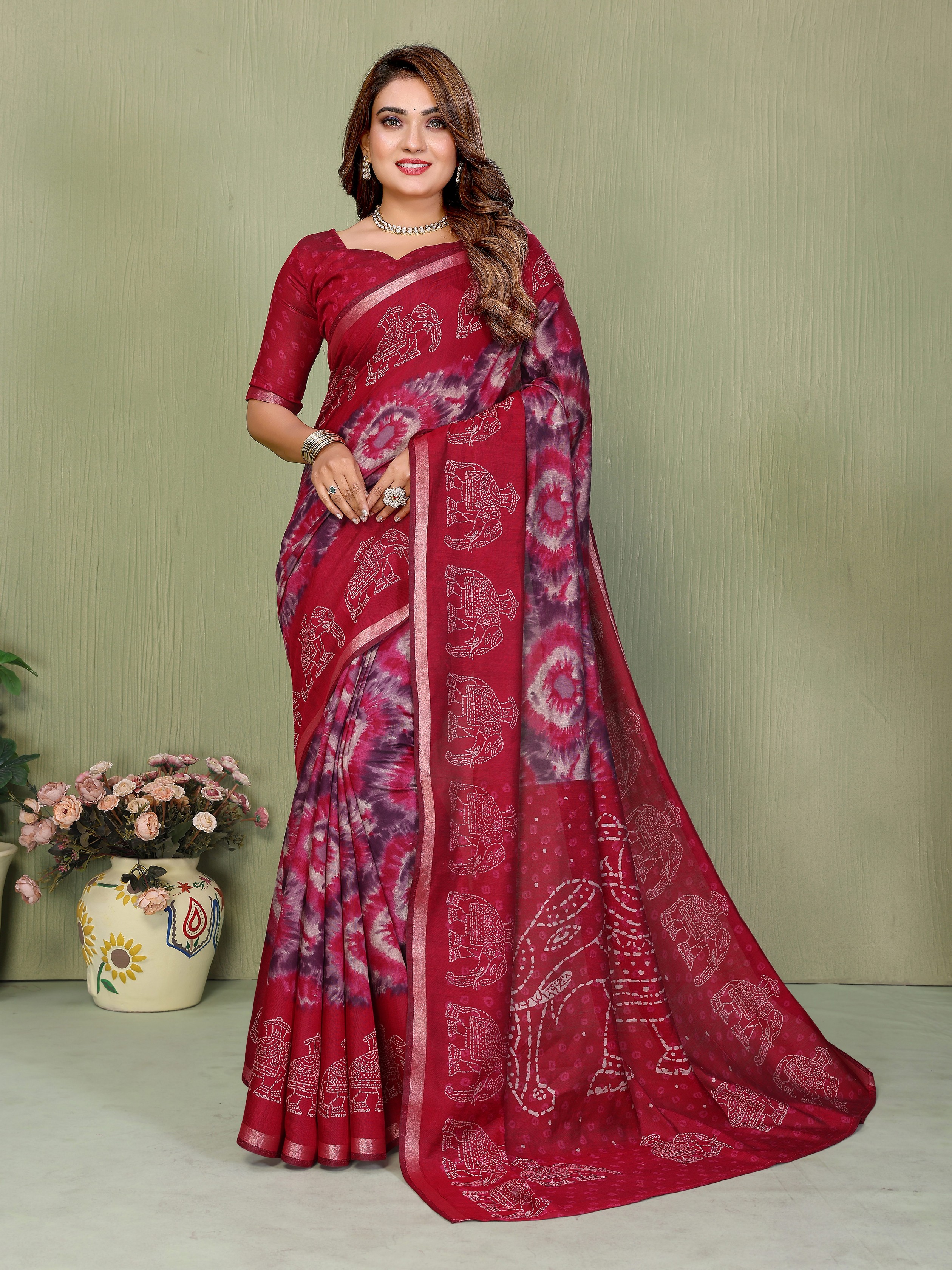 Maroon Color Mul Cotton Fabric Designer Printed Festive Special Saree