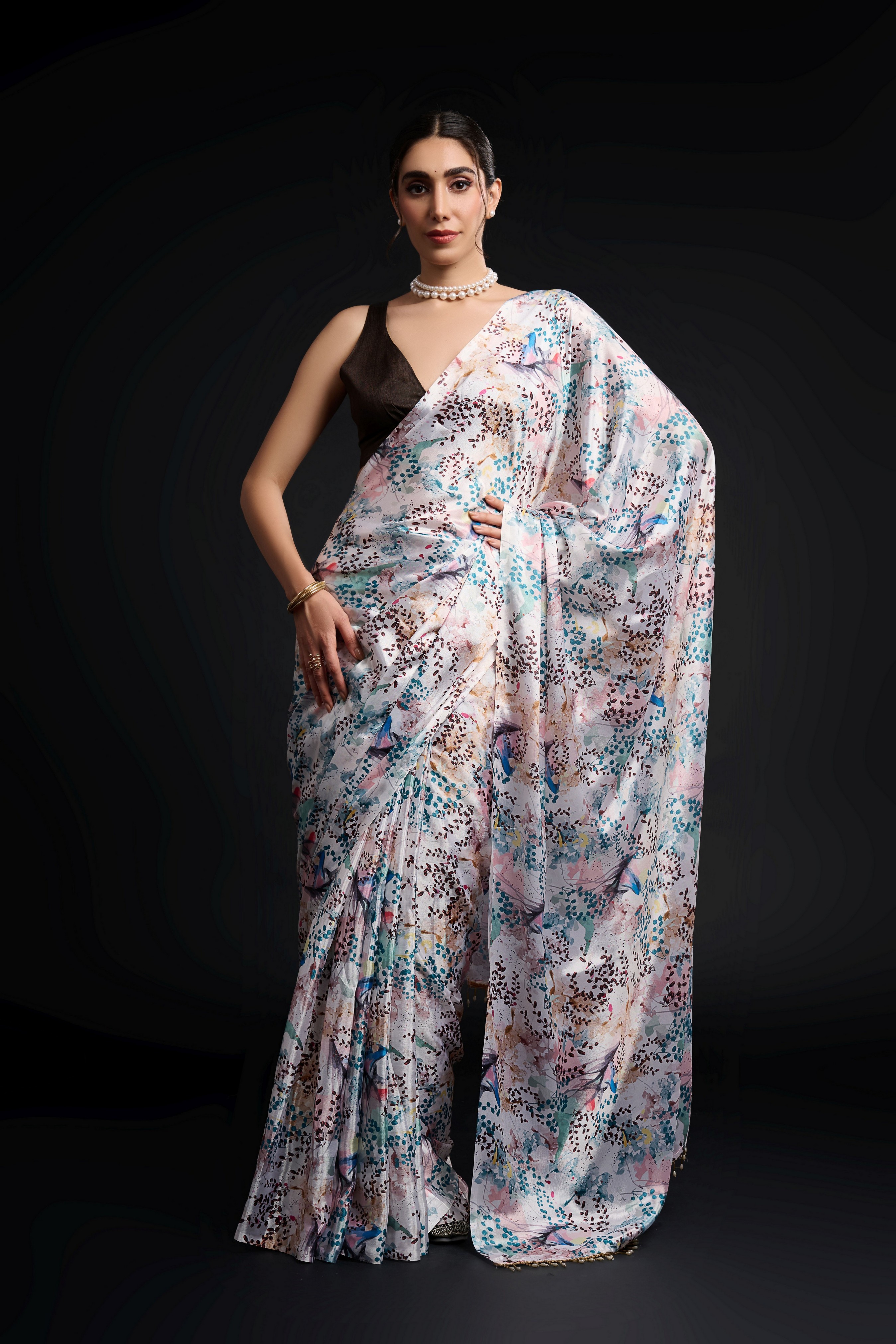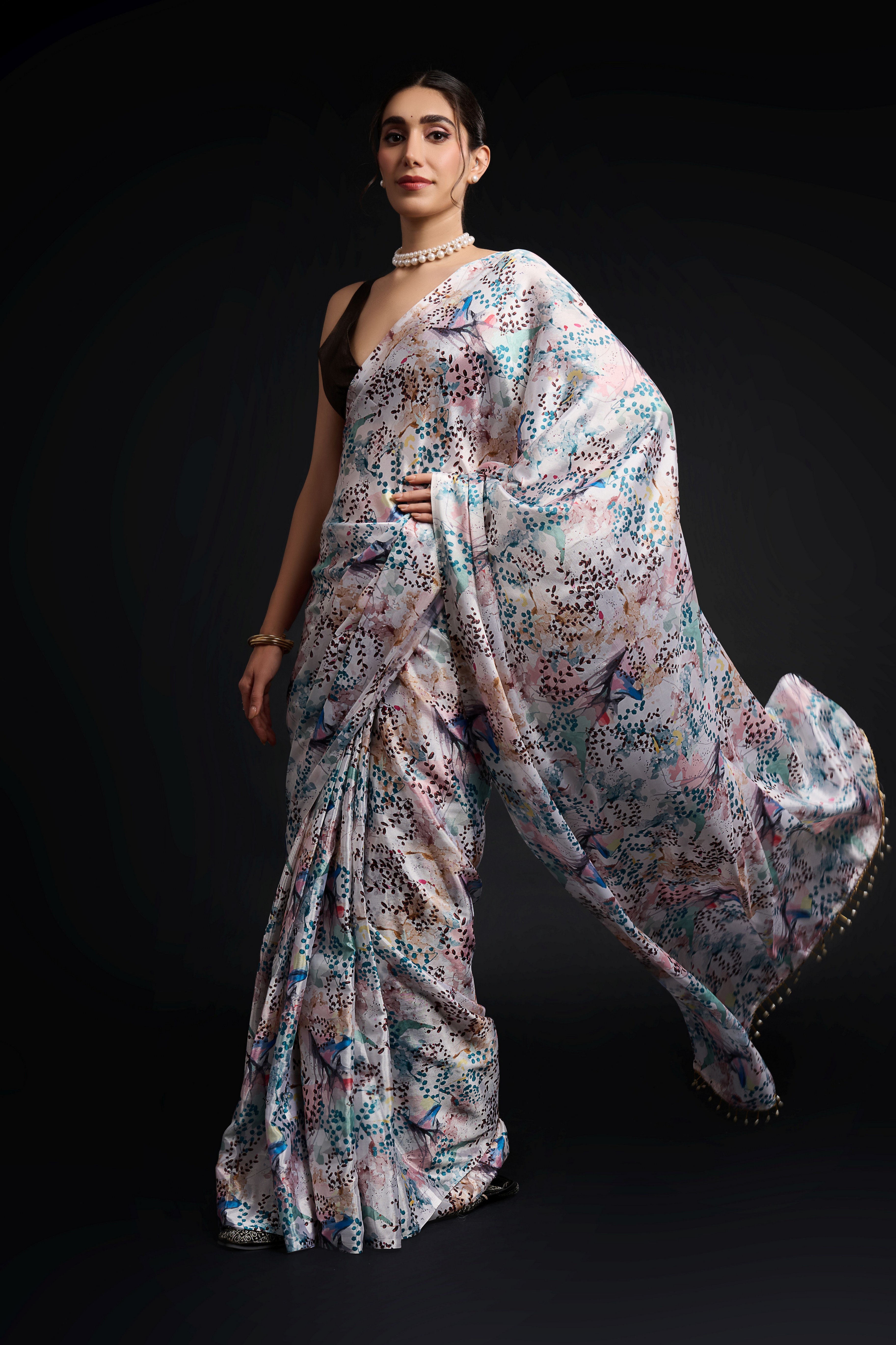 Multy Color Chinon Fabric Designer Prinnted Ready To Wear Saree