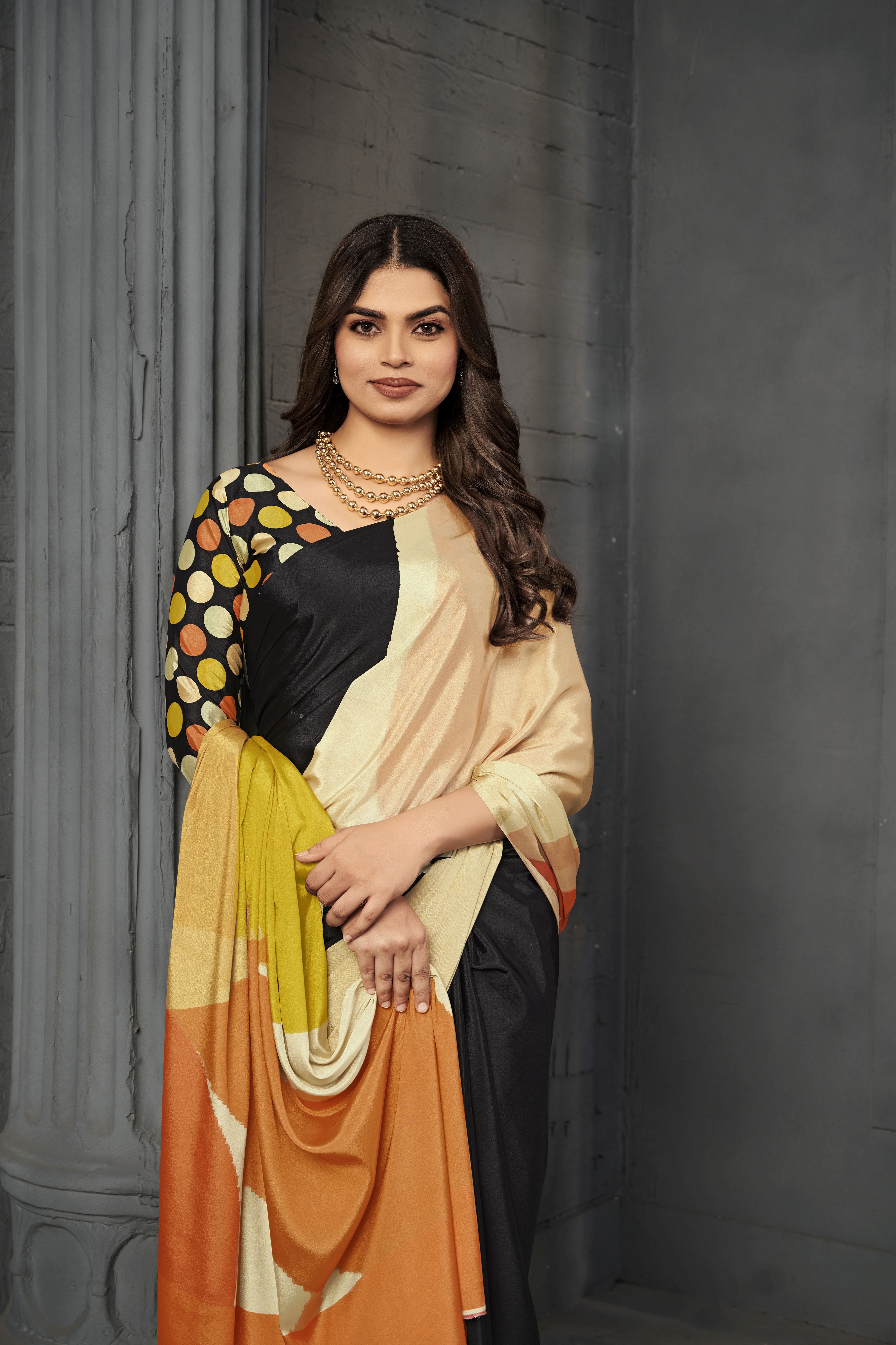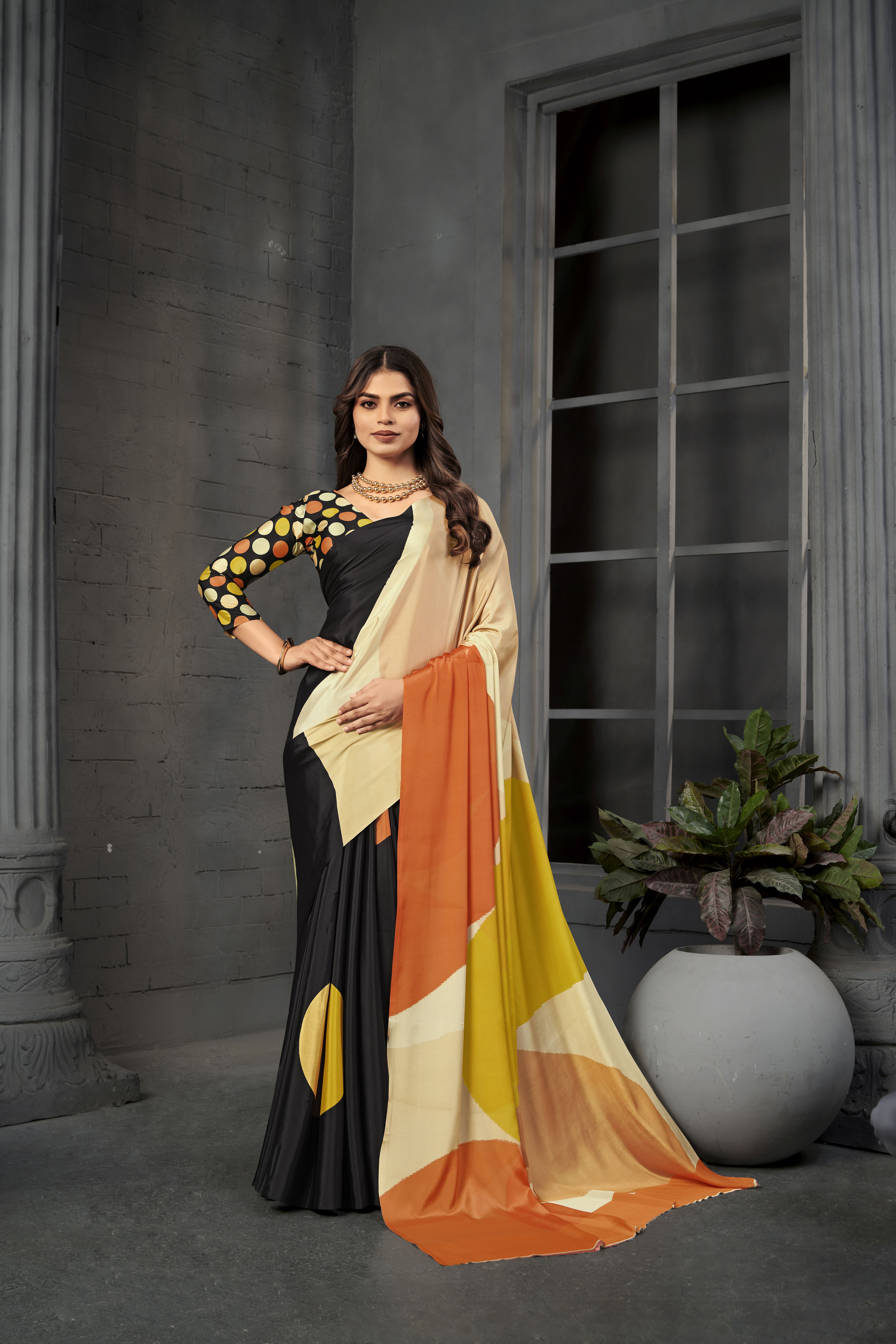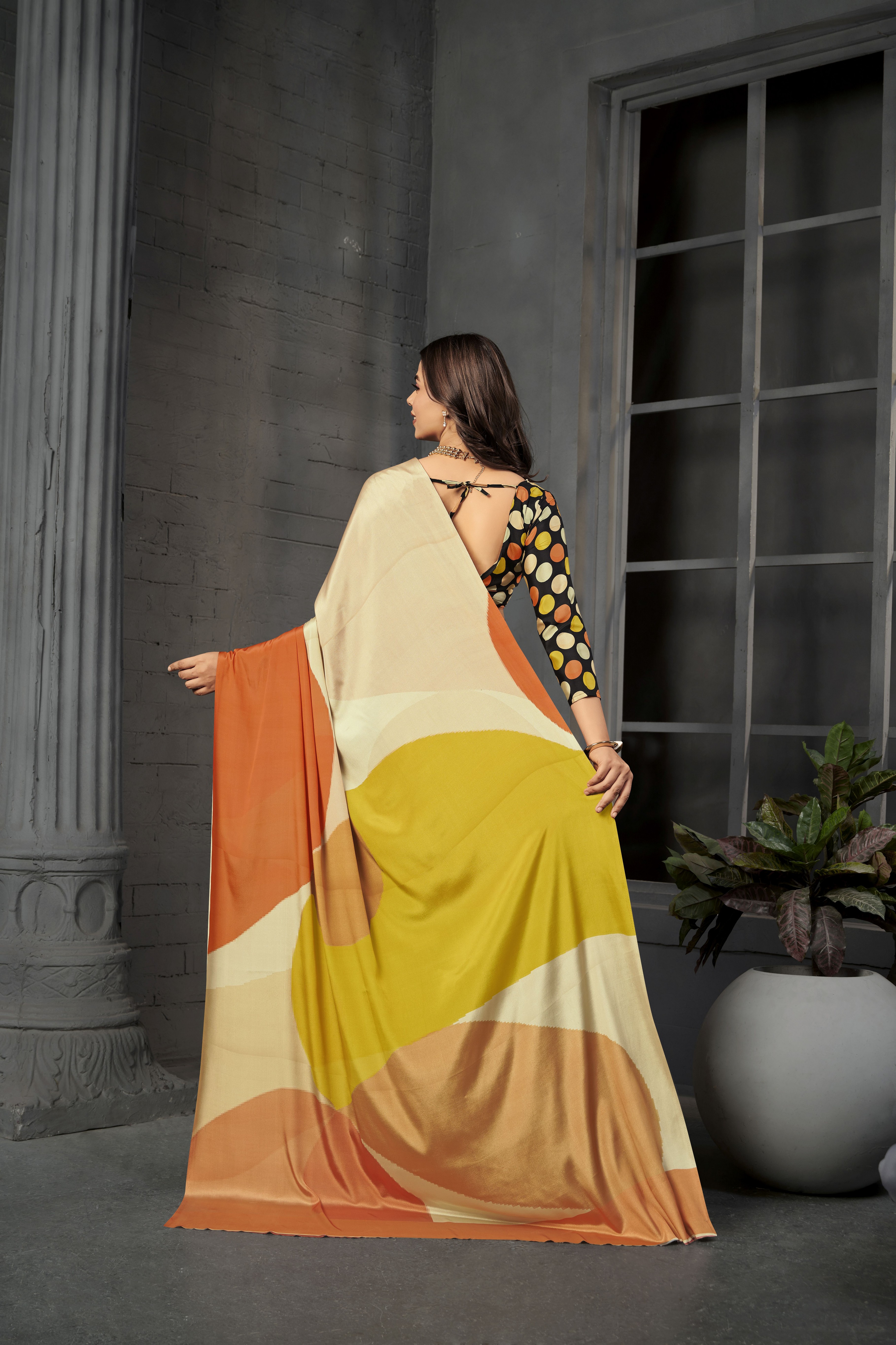 Multy Color Malai Crepe Silk Fabric Designer Digital Printed Beautiful Fancy Partywear Saree