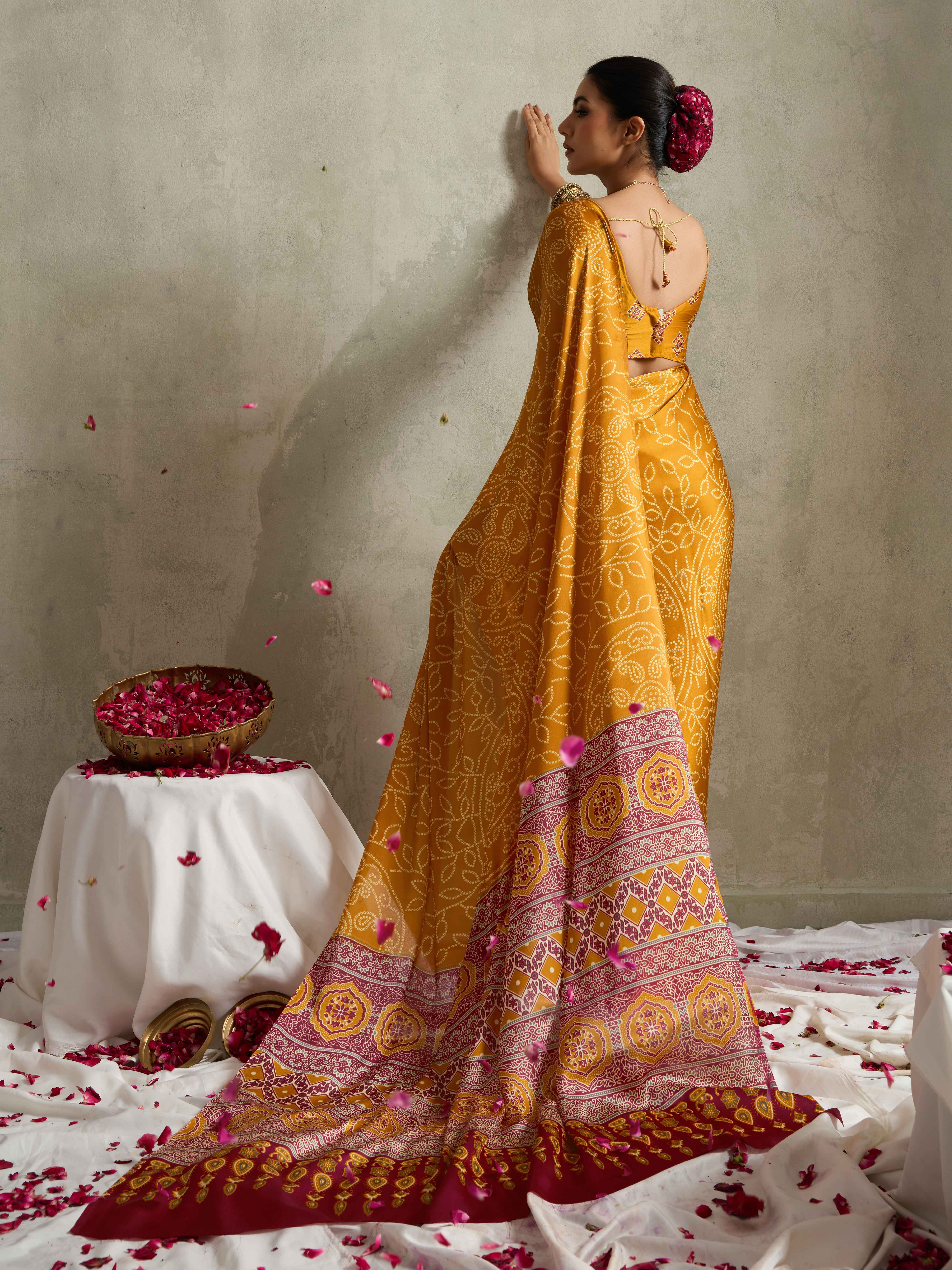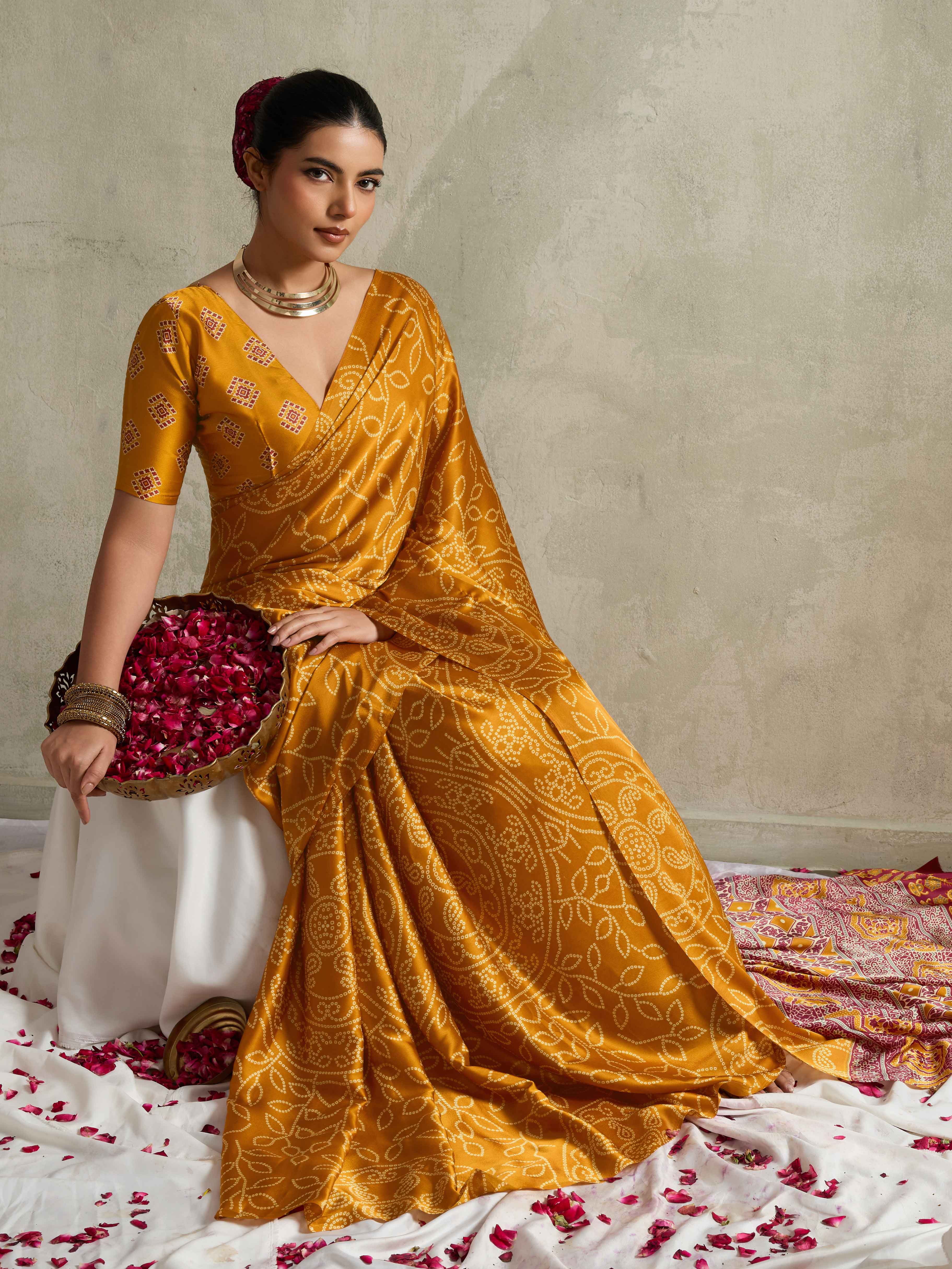 Mustard Color Rich Looks Designer Bandhani Printed Elegant Festive Saree