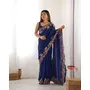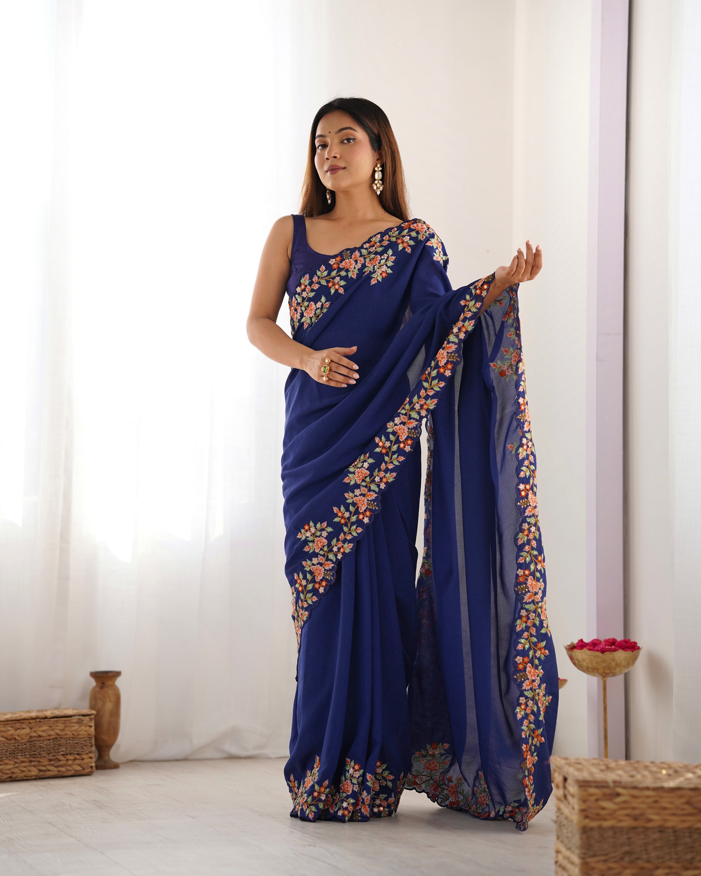 Navy Blue Color Vichitra Silk Fabric Designer Embrodery Work Ethnic Saree