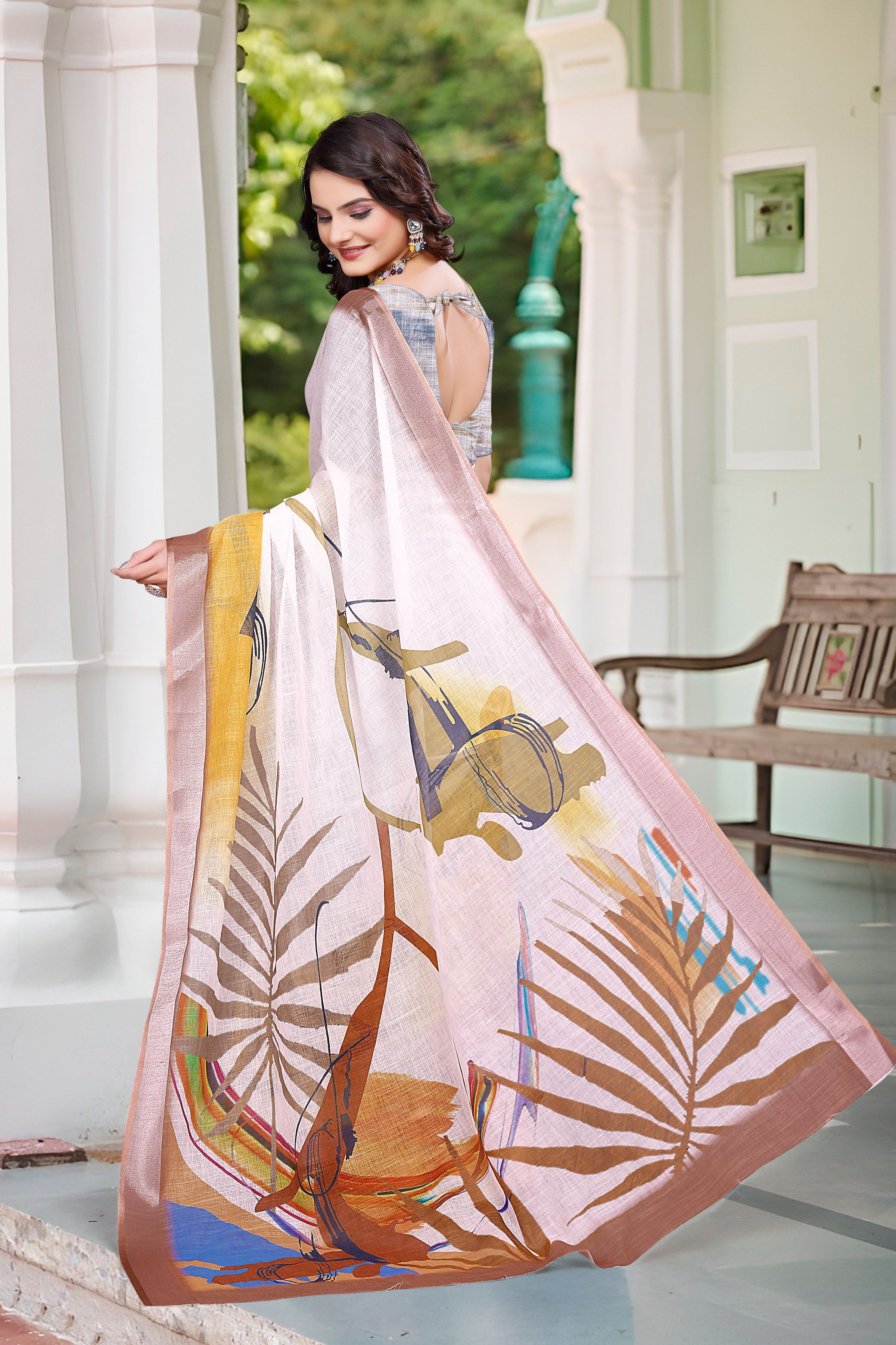 Attractive These Festive Saree in Fine Colored.These Saree Are Linen Cotton And Blouse is Fabricated On Linen Cotton Pair.Its Beautified With Woven Jari Border With Designer Digital Printed.
