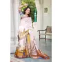 Off White Color Beautiful Designer Printed Saree With Woven Border