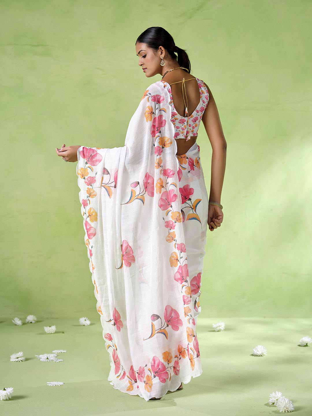 Off White Color Cotton Blend Fabric Beautiful Designer Printed Saree