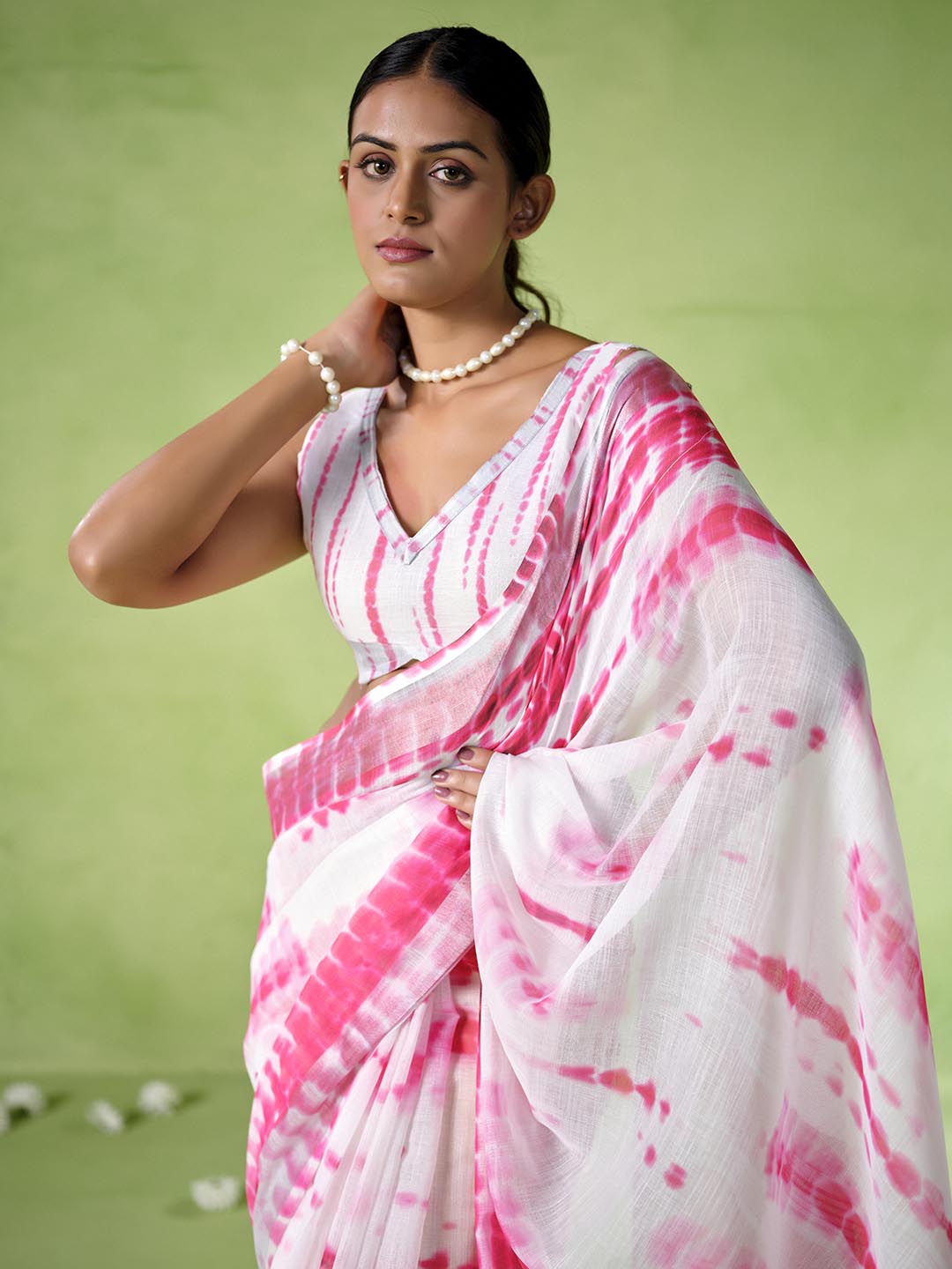 Off White Color Cotton Blend Fabric Beautiful Designer Printed Saree