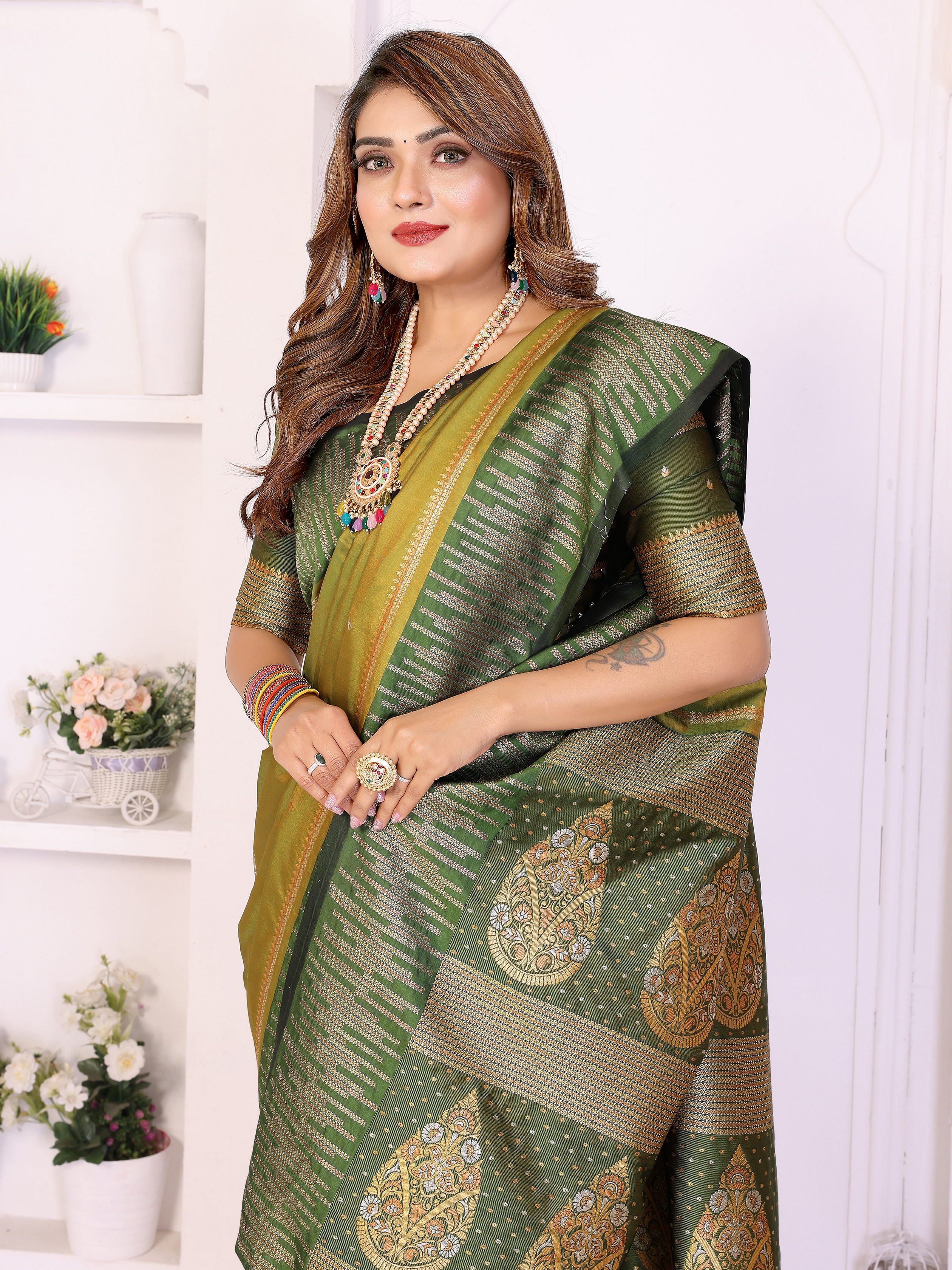 Olive Color South Soft Silk Fabric Woven Rich Pallu Designer Ceremonial Saree
