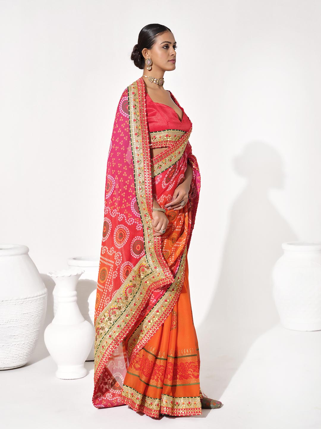 Orange Color Georgette Girlie Designer Printed Saree For Rich Sophisticated Looks