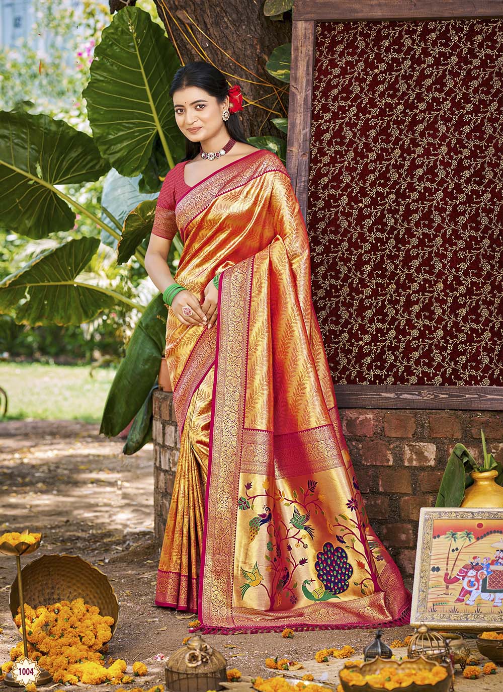 Orange Color Kanjivaram Silk Woven Jari Designer Ethnic Saree