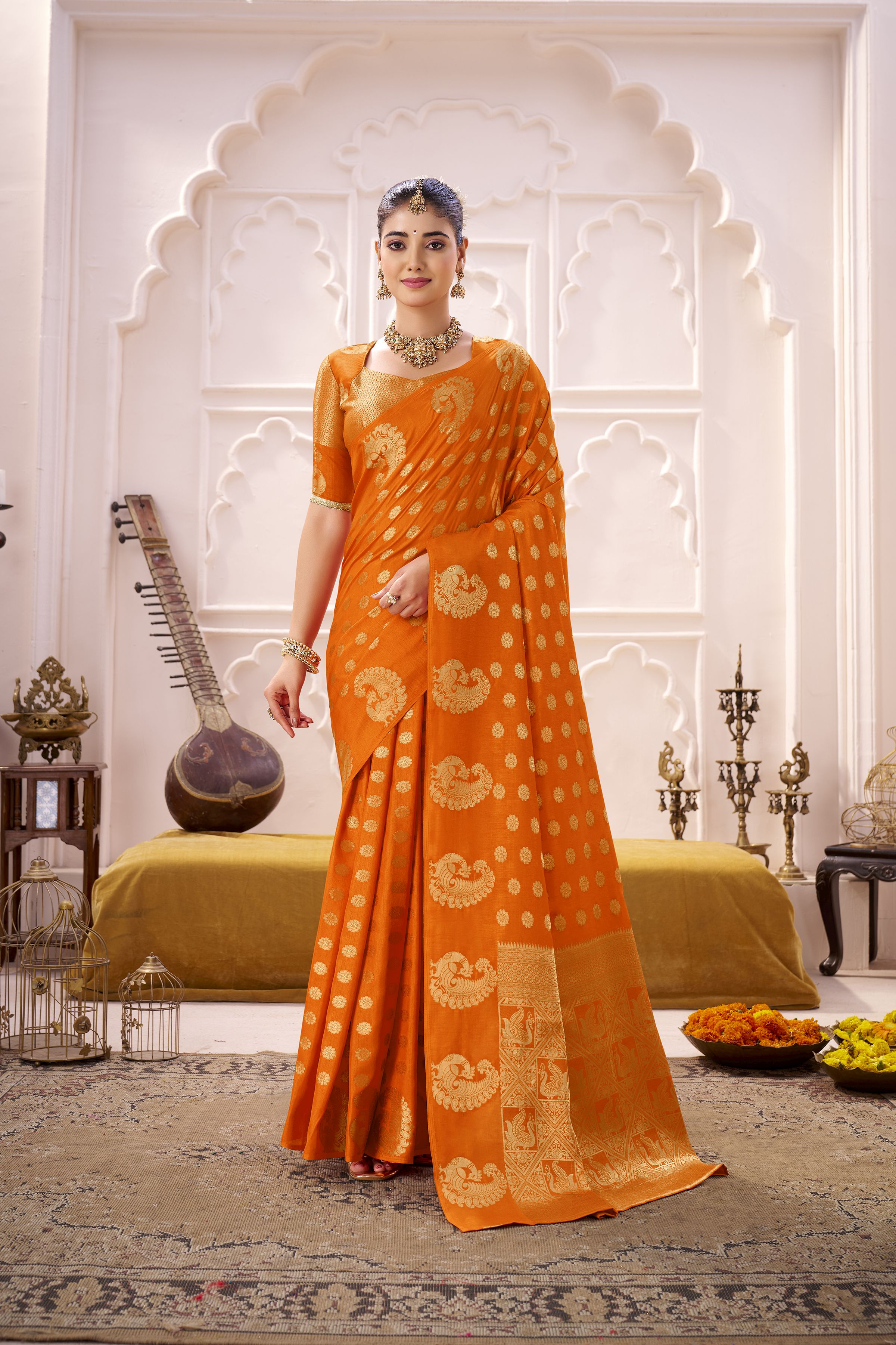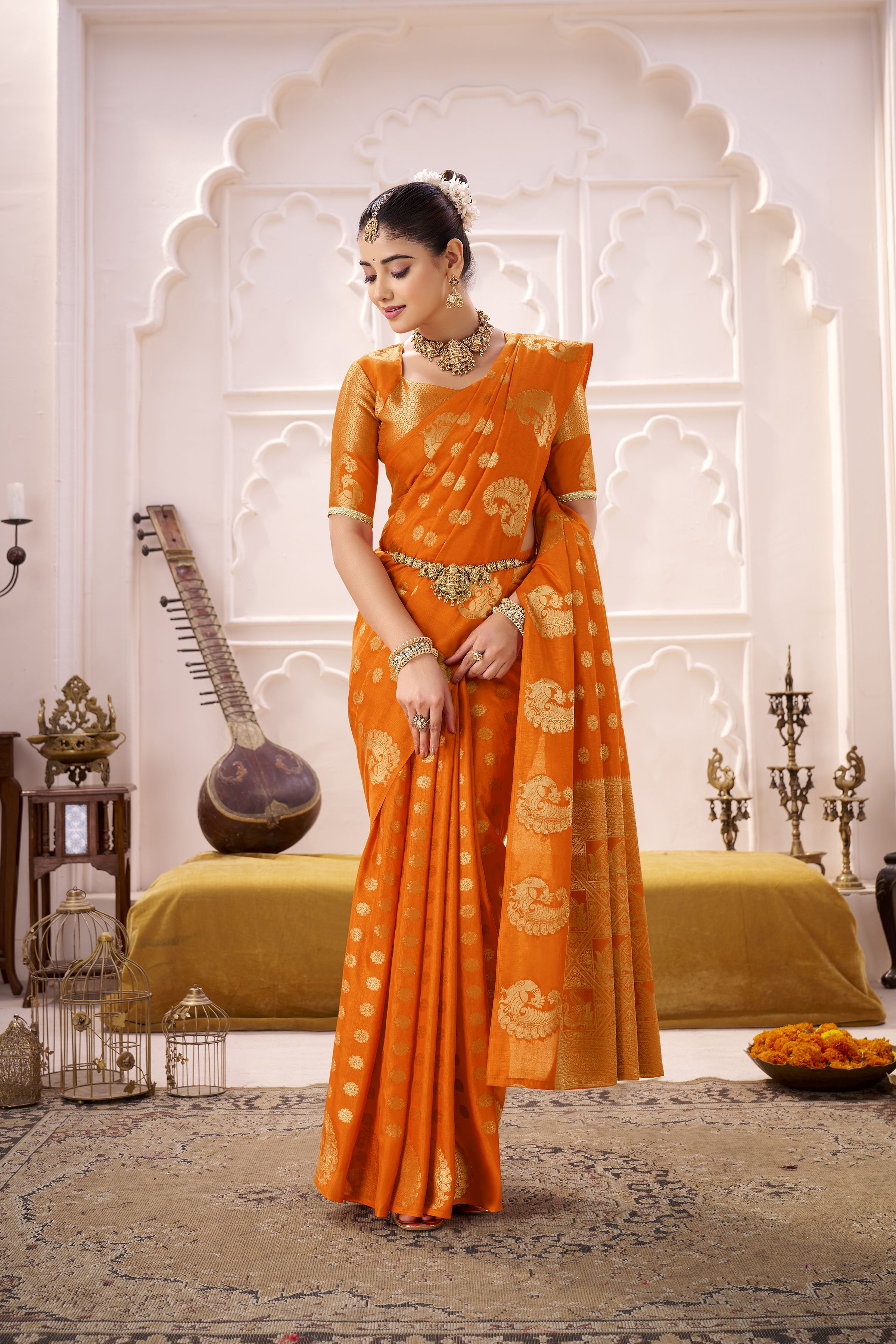 Orange Color Roop Silk Fabric Weaving Jari Designer Festive Special Saree