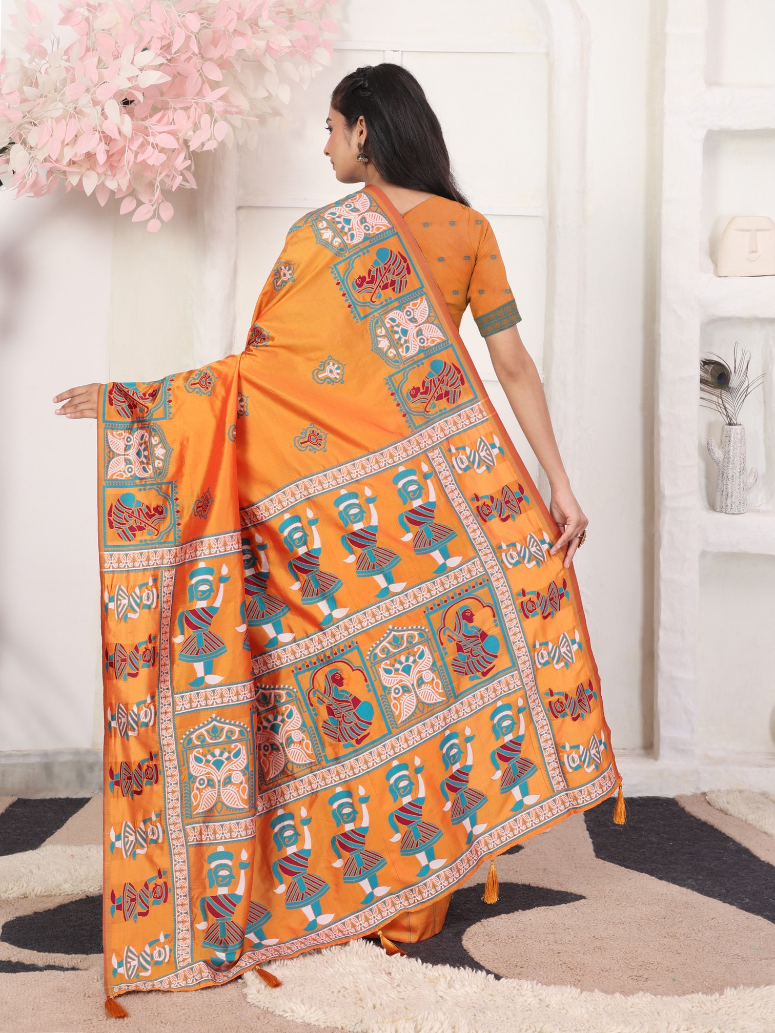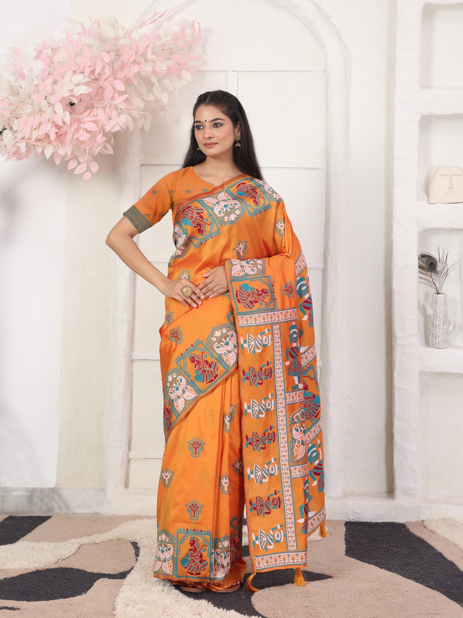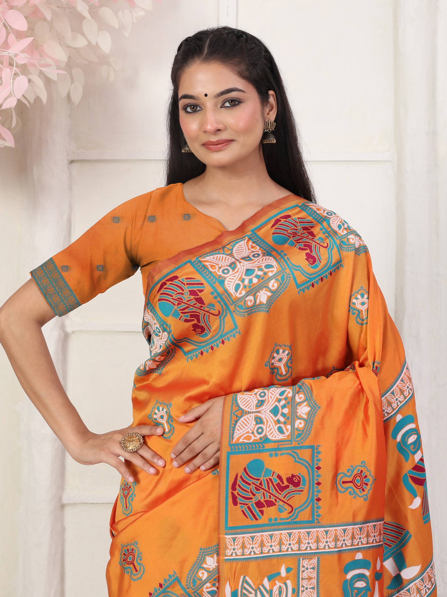 Orange Color Silk Blended Woven Designer Graceful Ceremonial Saree