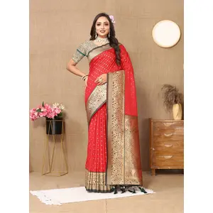 Red Color Soft Silk Fabric Ethnic...