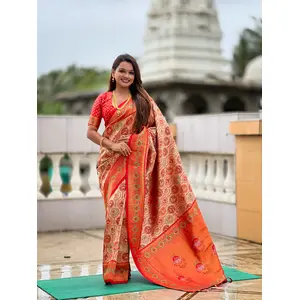 Orange Color Beautiful Silk Blended...