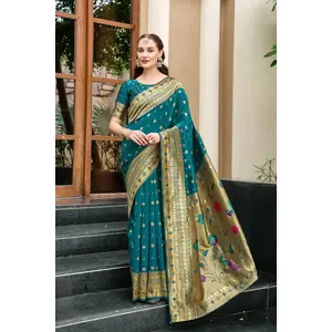 Deep Teal Color Beautiful Silk...