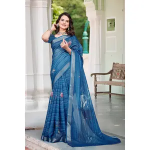 Teal Blue Color Linen Cotton Saree...