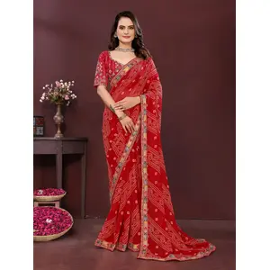Maroon Color Georgette Fabric Bandhej...