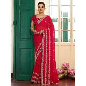 Red Color Designer Satin Fabric Saree...