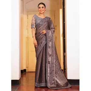 Grey Color Tissue Fabric Embroidery...