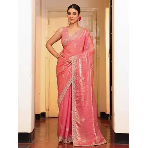 Pink Color Tissue Fabric Embroidery...