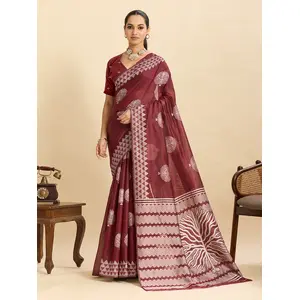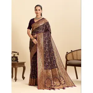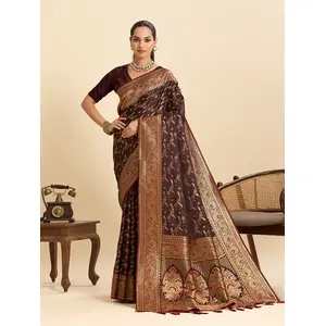 Wine Color Ethnic Soft Silk Woven...