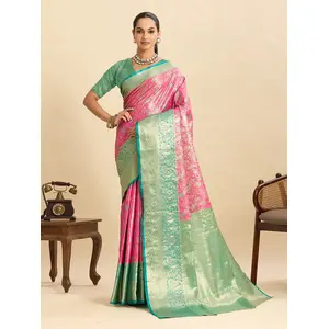 Pink Color Silk Blended Woven Jari...