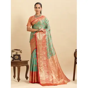 Sea Green Color Silk Blended Woven...