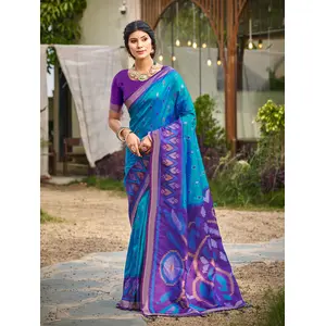 Blue Color Soft Silk Fabric Woven...