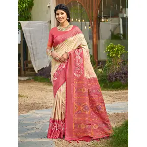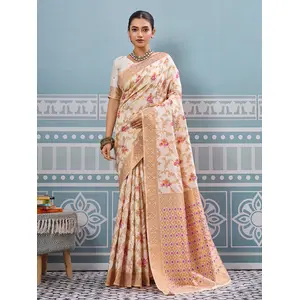 Cream Color Soft Silk Fabric Woven...