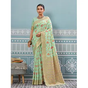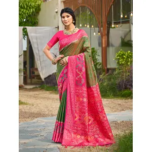 Mehandi Color Soft Silk Fabric Woven...