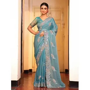 Blue Color Tissue Fabric Embroidery...