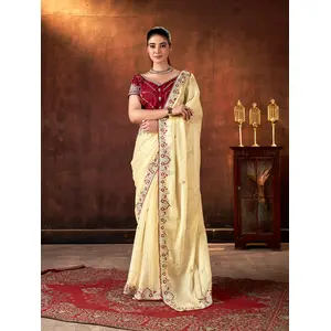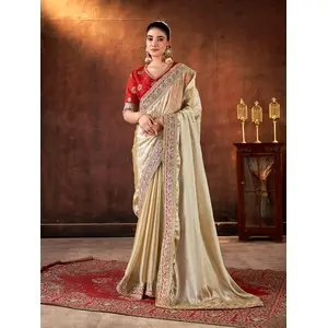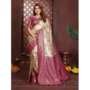 Crean Color Banarasi Tissue Silk...