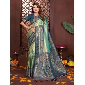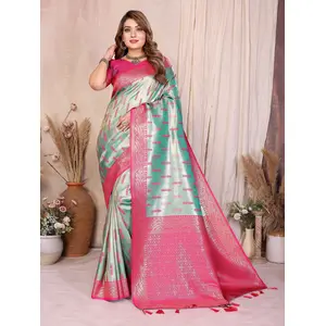 Sea Green Color Banarasi Tissue Silk...