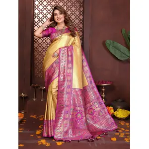 Yellow Color Banarasi Tissue Silk...