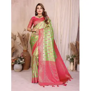 Green Color Banarasi Tissue Silk...