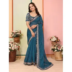 Teal Blue Color Organza Fabric...