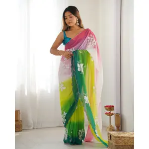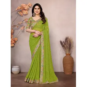 Green Padding Color Georgette Fabric...