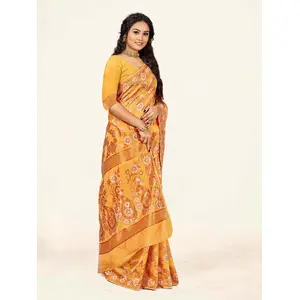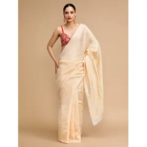 Cream Color Lichi Silk Saree Woven...
