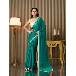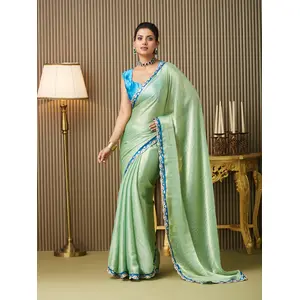Firozi Color Chinon Fabric Designer...