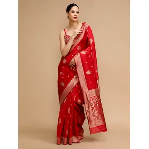 Red Color Lichi Silk Saree Woven...