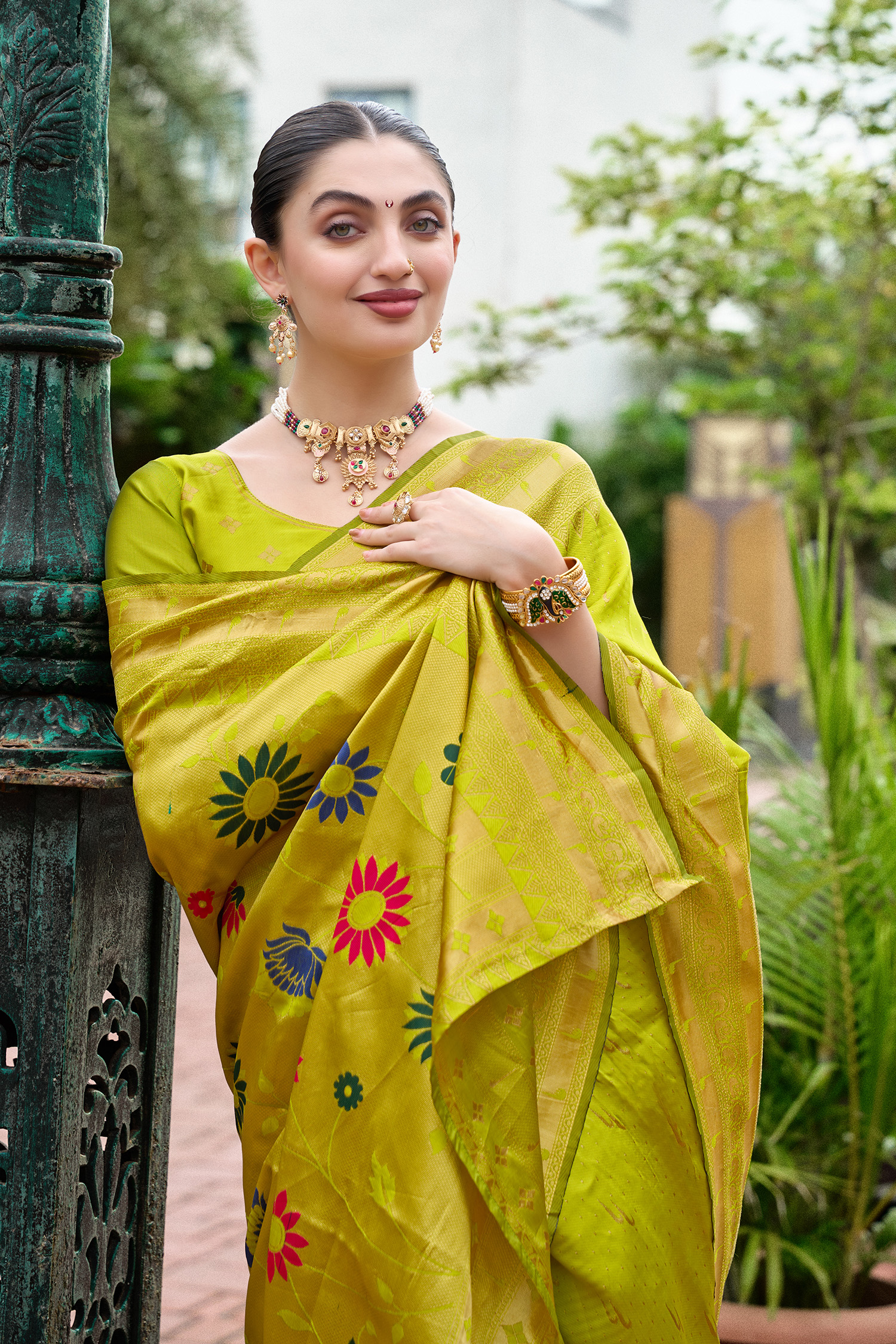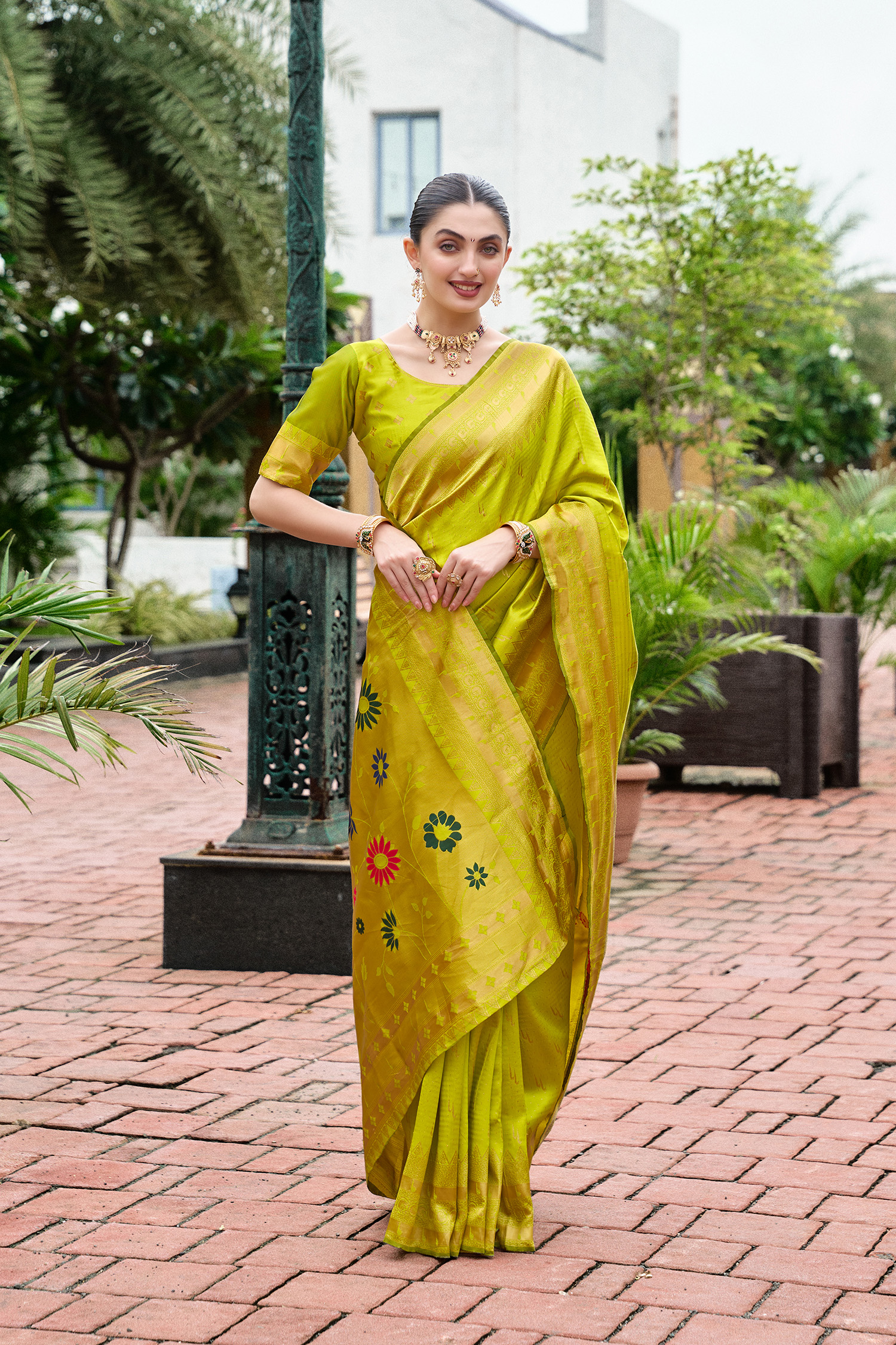 Parrot Color Beautiful Silk Blended Woven Zari Designer Ceremonial Saree